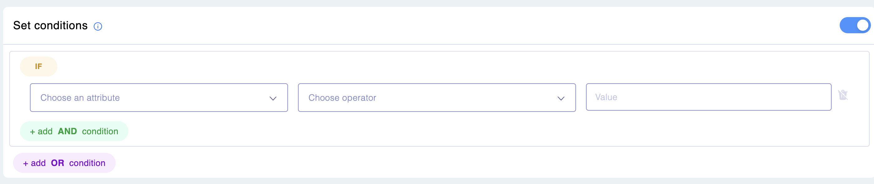Simply use the toggle to enable. You can then IF and OR conditions.