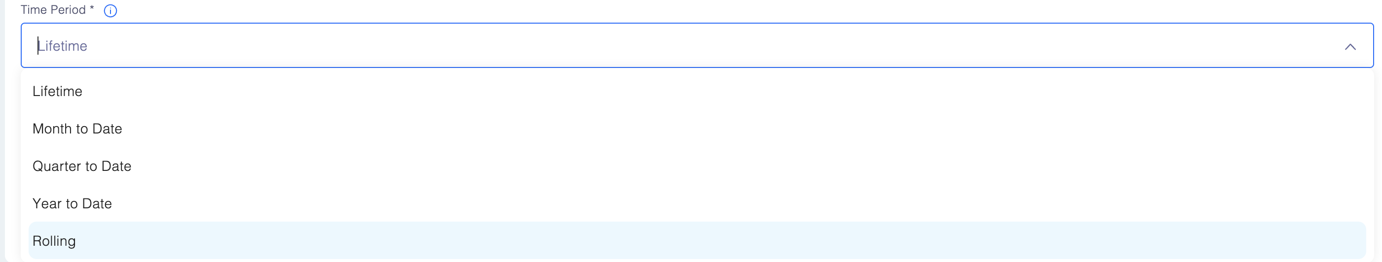 The "Time Period" determines the range over which the selected attribute will be aggregated. This defines how far back the system will look to calculate the aggregation.