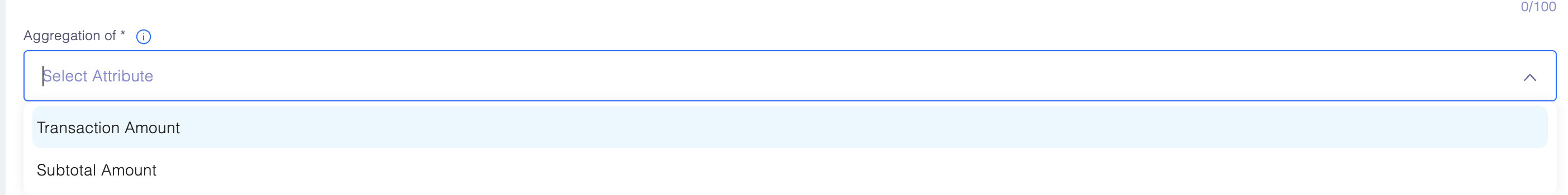 Example: Total transaction amount spent in the last 30 days. - Count → Counts the number of occurrences of the selected attribute.