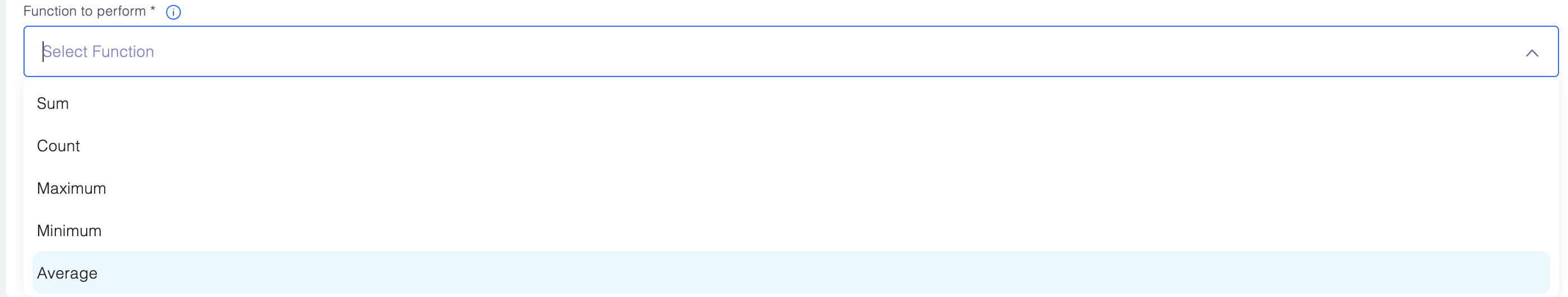 The "Function to Perform" determines how the selected attribute will be aggregated over the defined time period. This function defines the type of calculation applied to the attribute values.