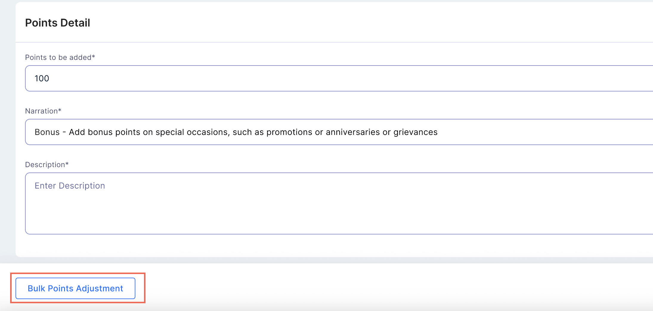 - If maker-checker is enabled for point adjustments, your submission will be routed through the approval workflow.