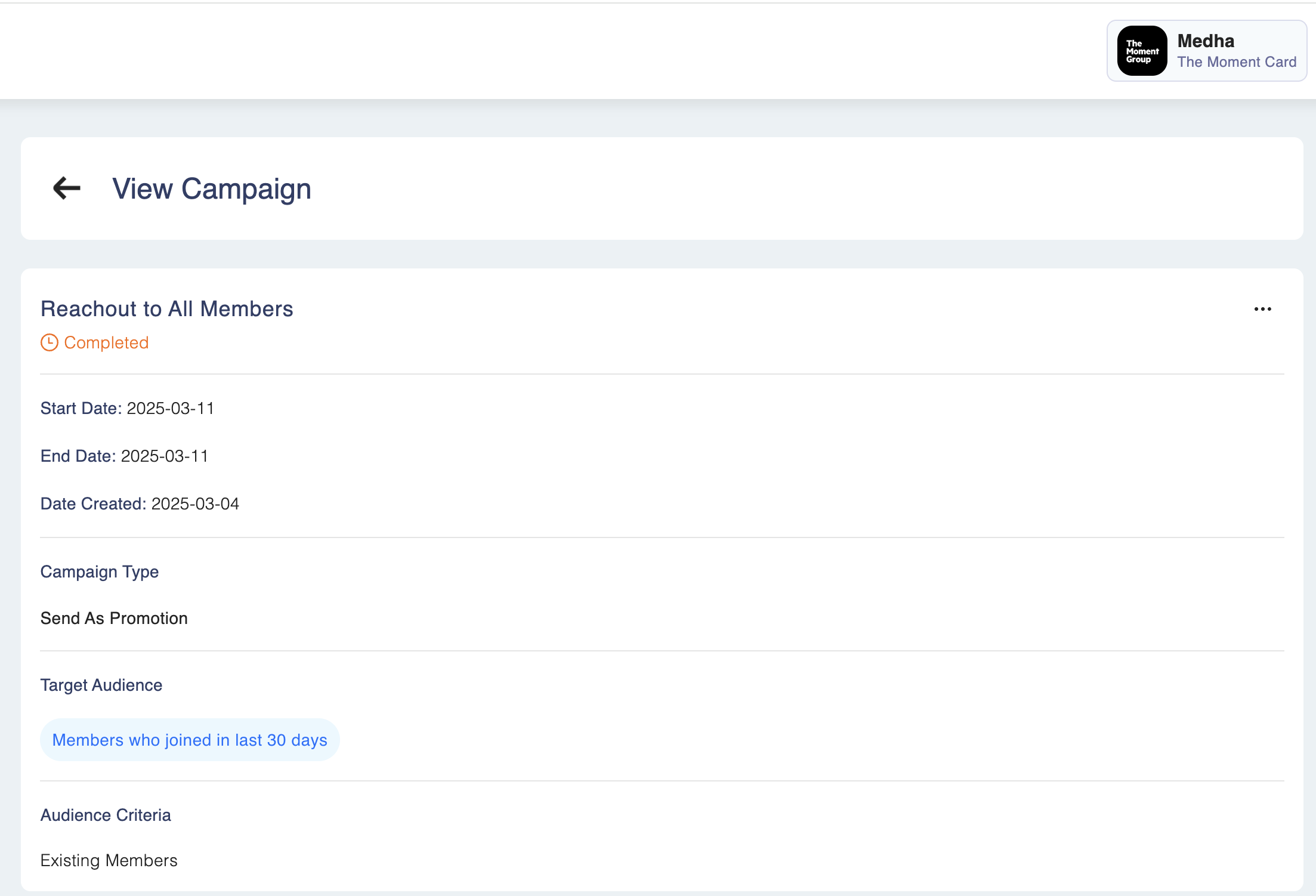 - Total Members Reached: The estimated number of customers reached by the campaign.