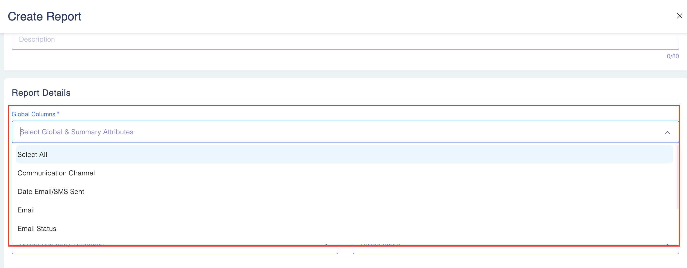 - Report Summary Options: Here select the option from the drop-down menu.