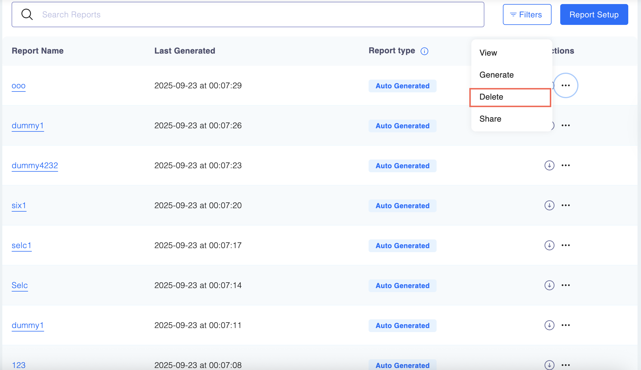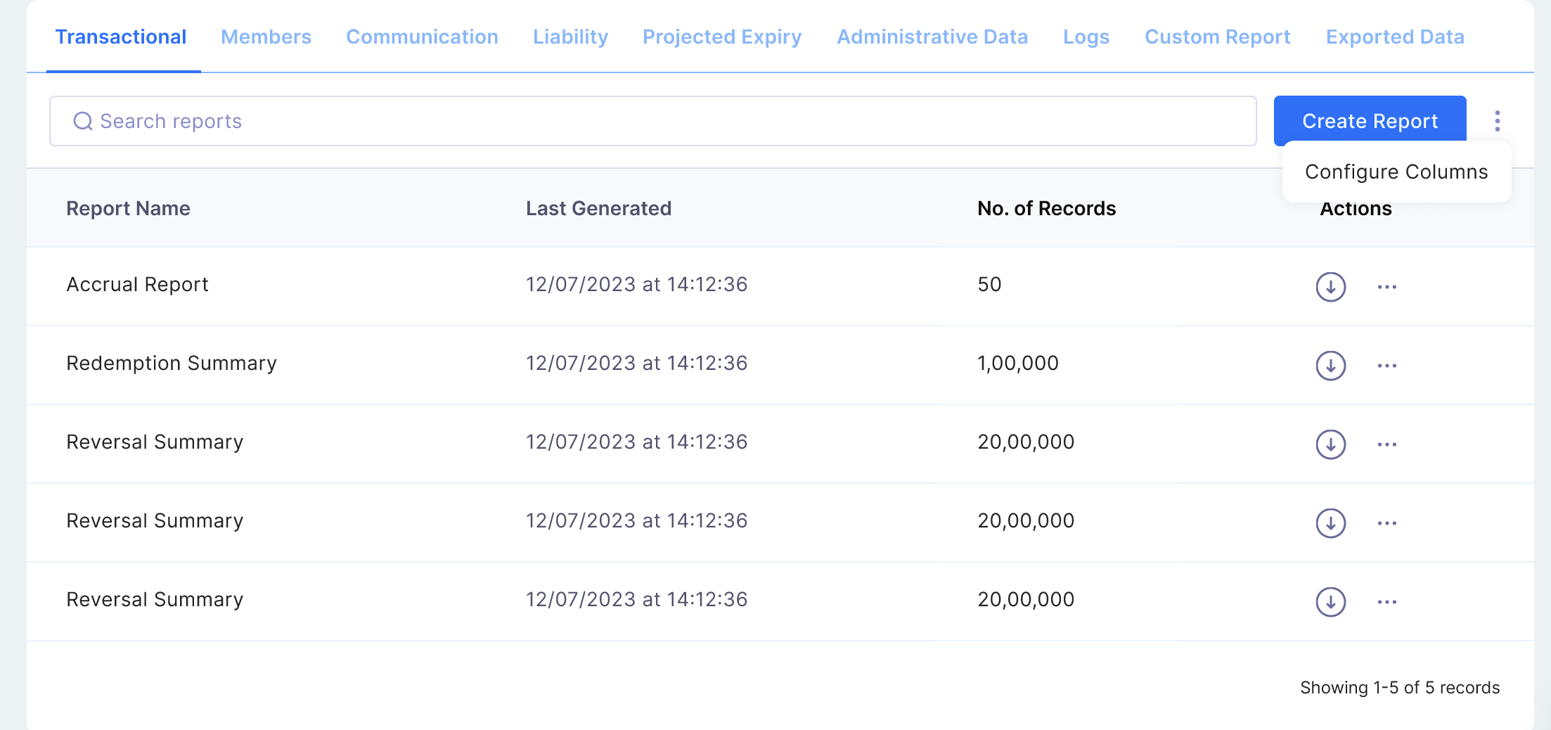 - After the report is generated, you can view it on the platform or download it in a CSV format by simply clicking on the download button next to the relevant report as shown below.