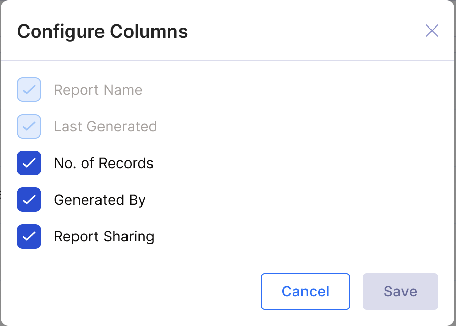 You can customise which columns are visible in the main report table using the Configure Columns option. This lets you choose the information displayed upfront without changing the report itself.