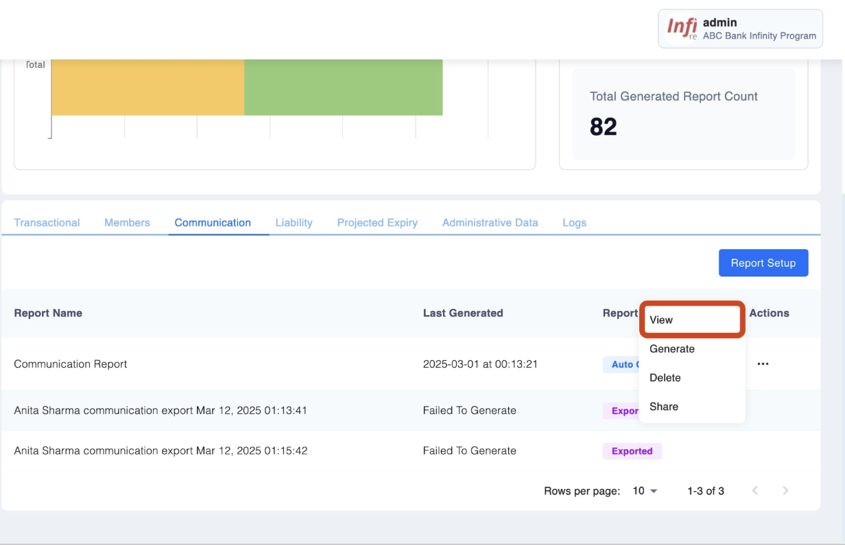 - Locate the report you want to access and click the three dots at the right and then click "View".