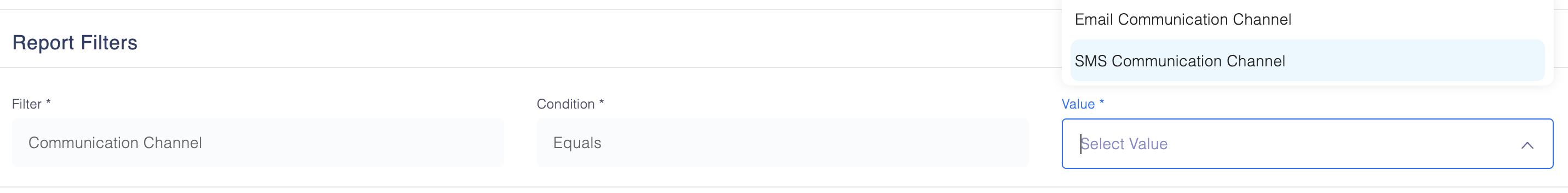 - SMS Communication Channel: Filters data based on the SMS communication channel.