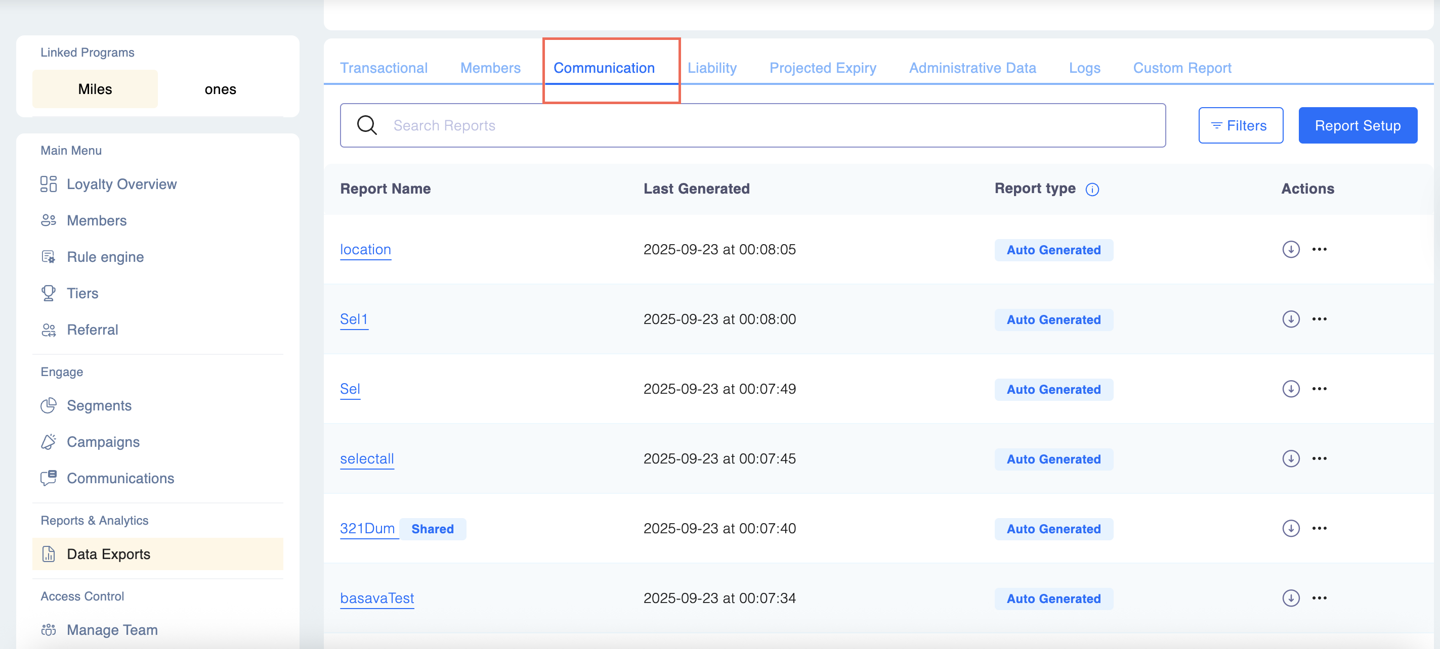 - Navigate to Reports & Analytics > Data Exports > Communication tab.