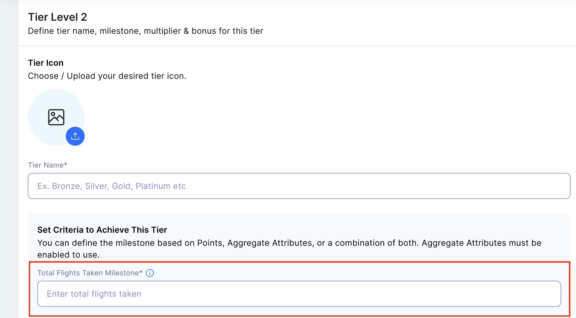 Option 2: If you have selected tier qualification method as Aggregated Attribute, then you would be required to add the attribute in the option below.