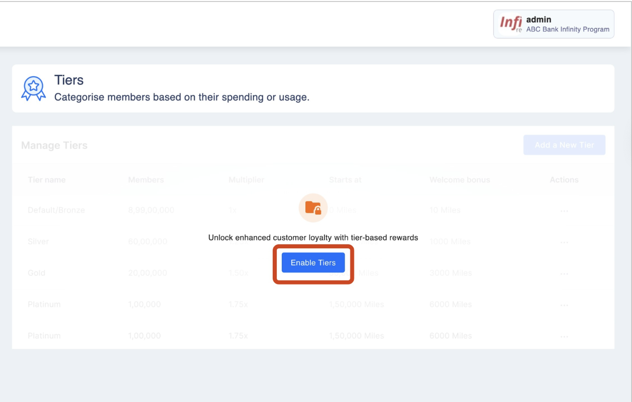 Establish how members enter into higher tiers on points earning and time frame. The same can be re-configured in the tier settings.
