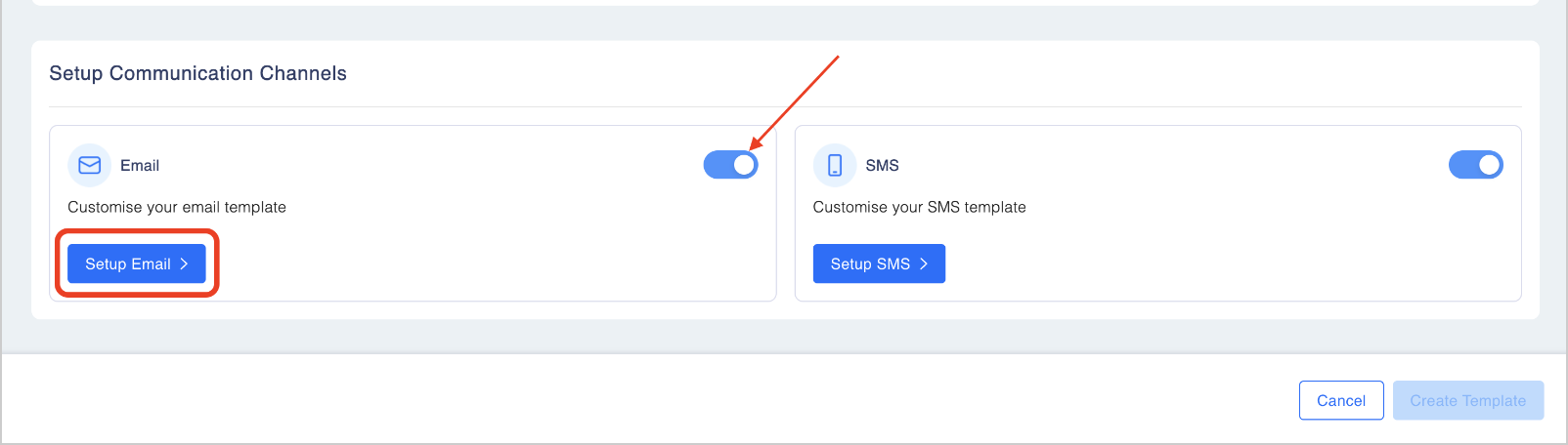 Step 4: Enable or disable the email channel for the template and customize the email template.