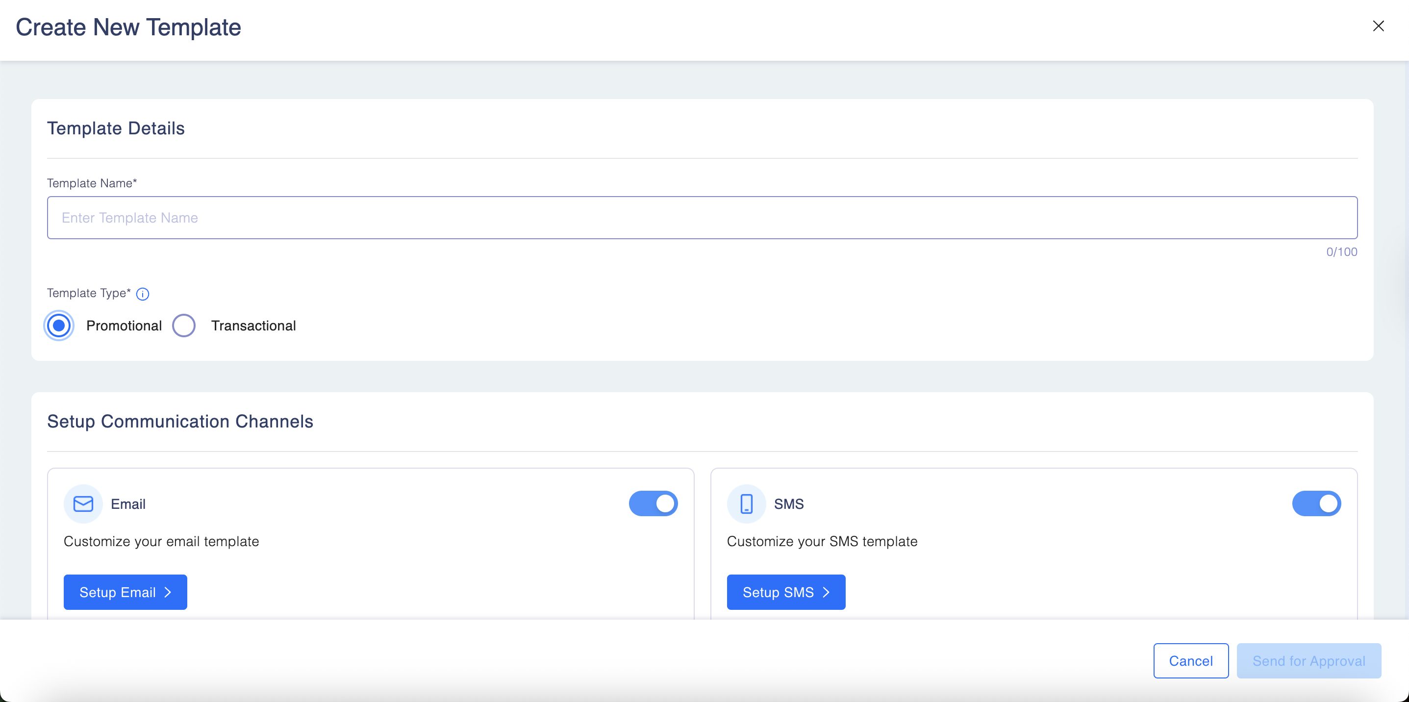 Step 3: Select the appropriate Template Type, either Promotional orTransactional.