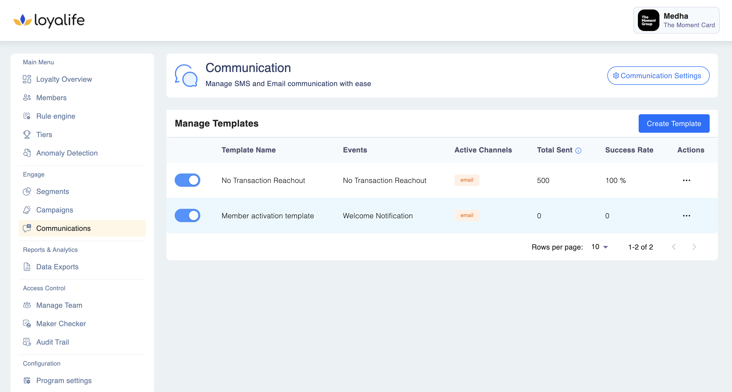 Step 1: To add a communication template in the communication module, go to Engage ➝ Communication ➝ Create Template.