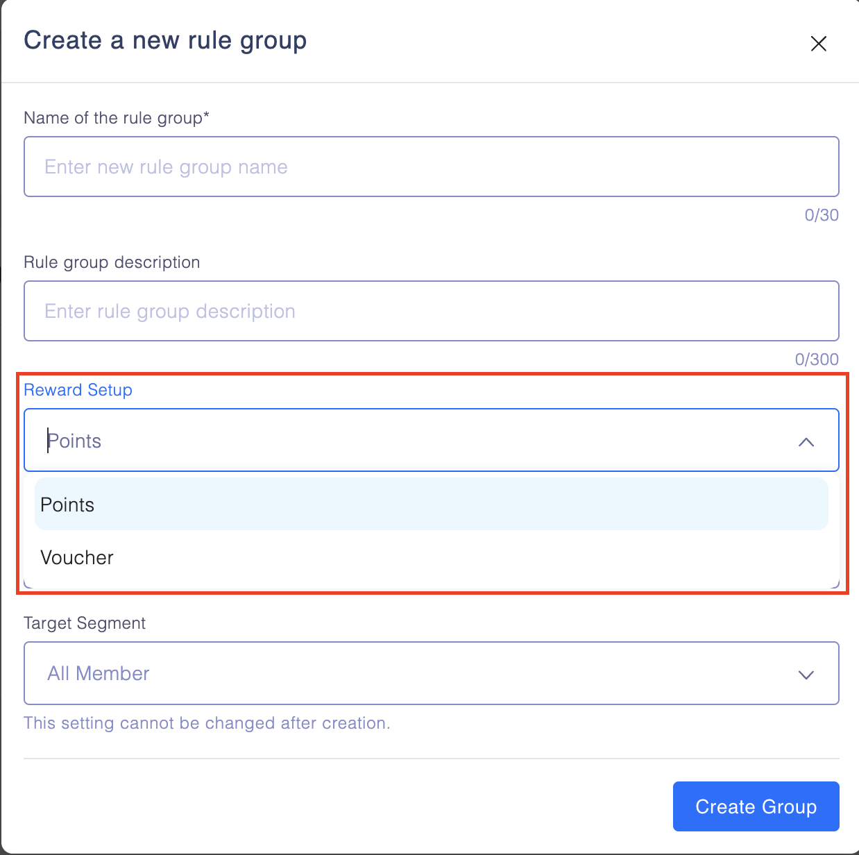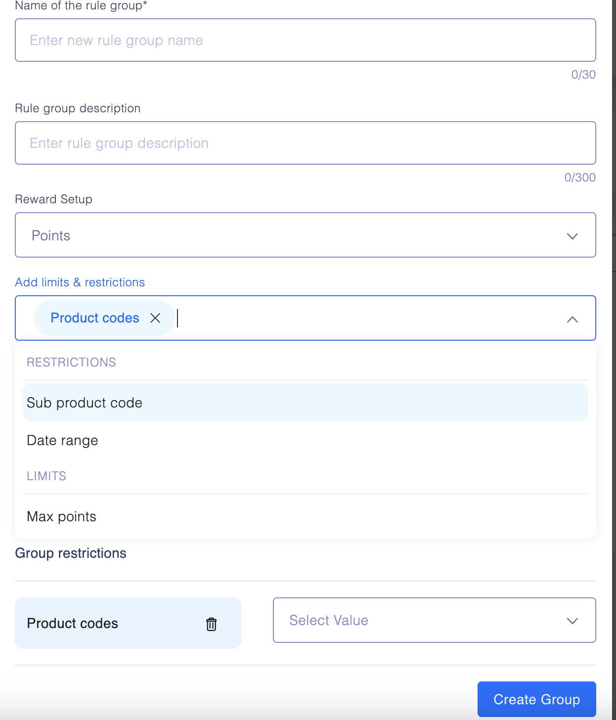 - Max Points: Set the maximum points that can be awarded per month or lifetime. Lastly, click on "Create Group".