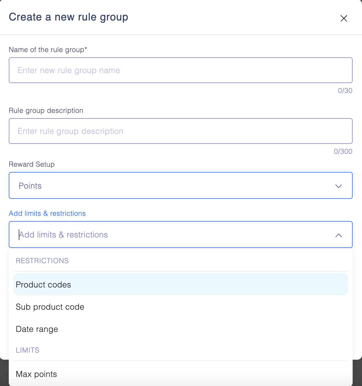 - Max Points: Additionally, the rule group can enforce a maximum points threshold a member can earn through that rule group.