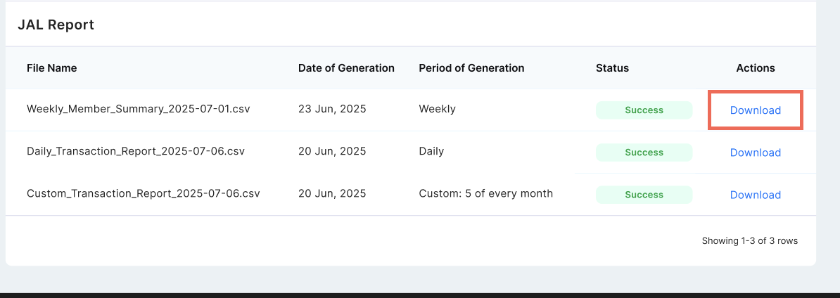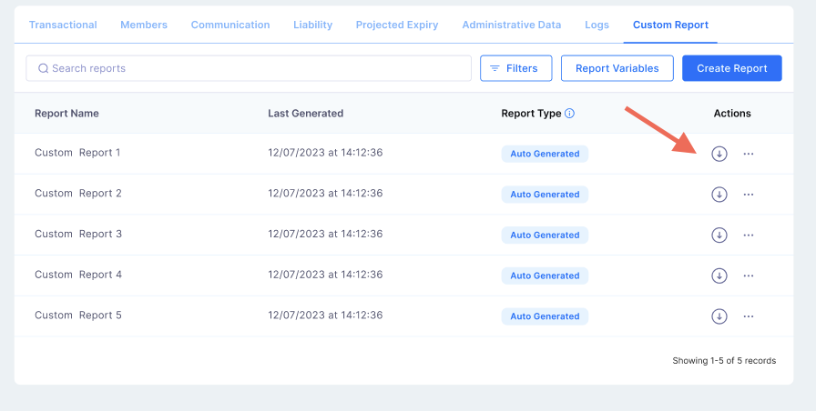 Option 1: Click the Download button next to the custom report you want.
