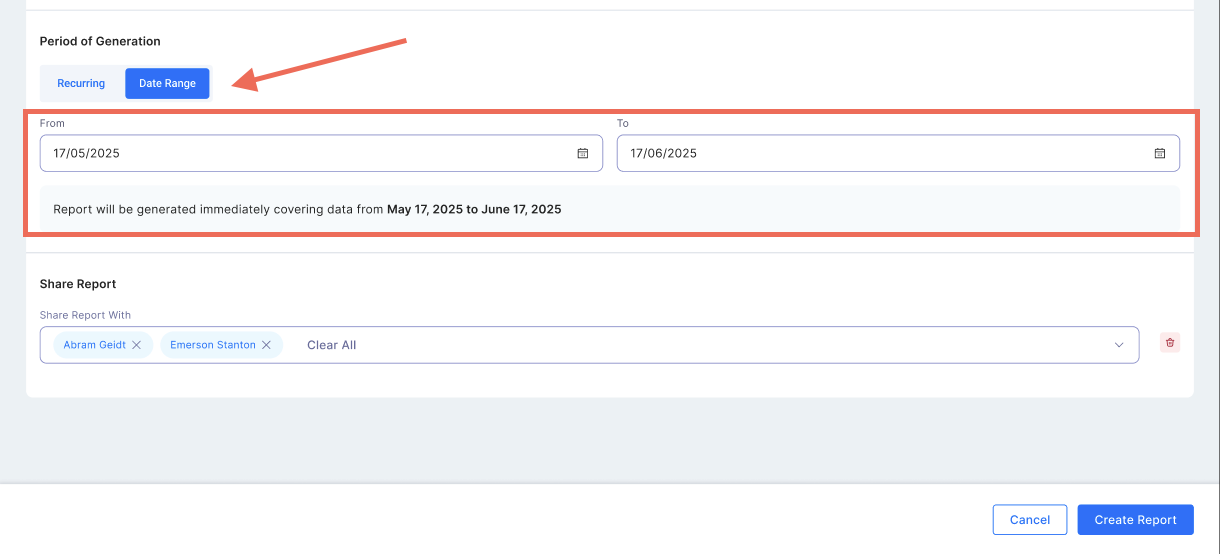 - Select the period of generation. You can either select