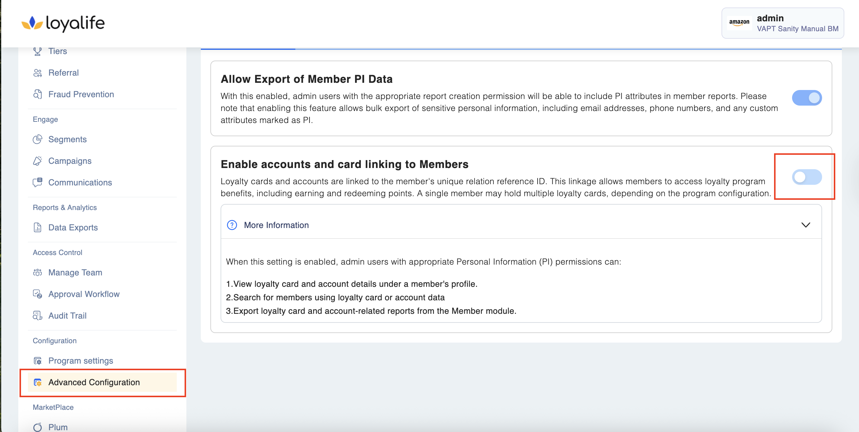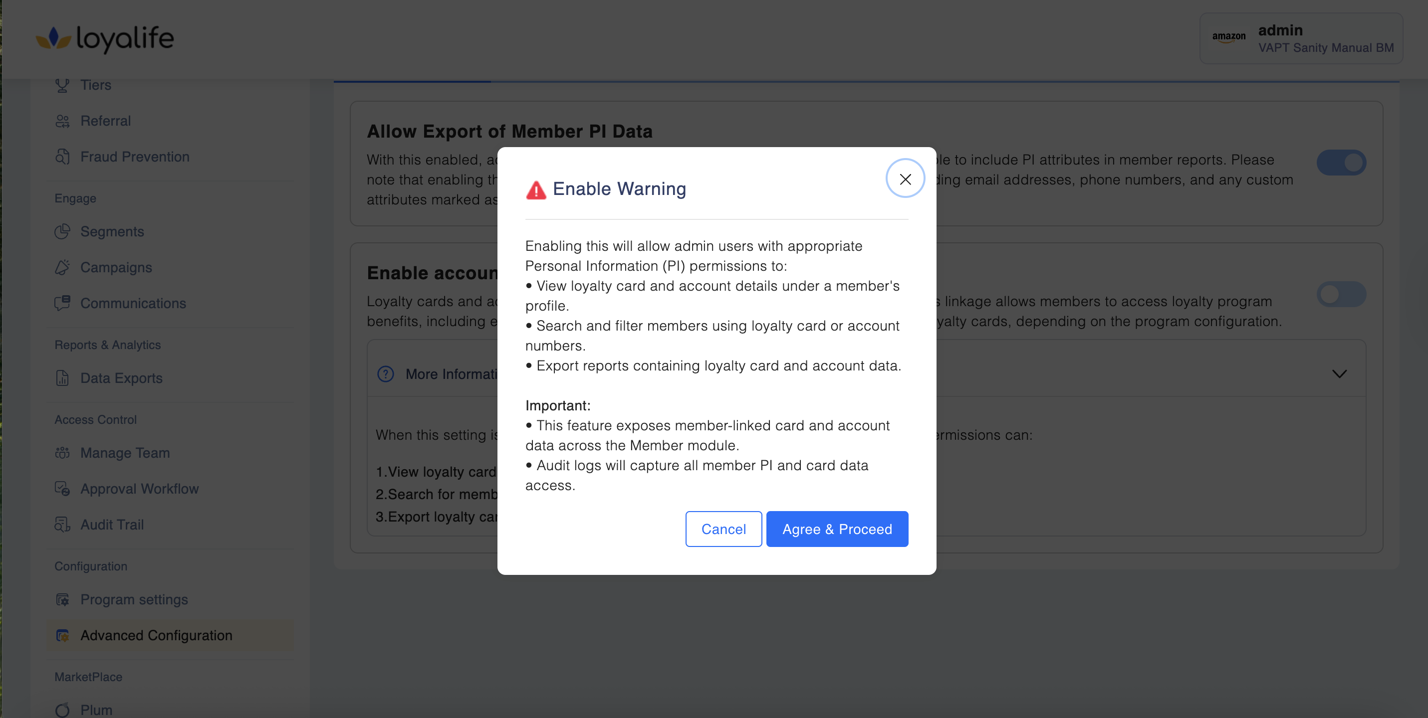 When this setting is enabled, admin users with appropriate Personal Information (PI) permissions can: