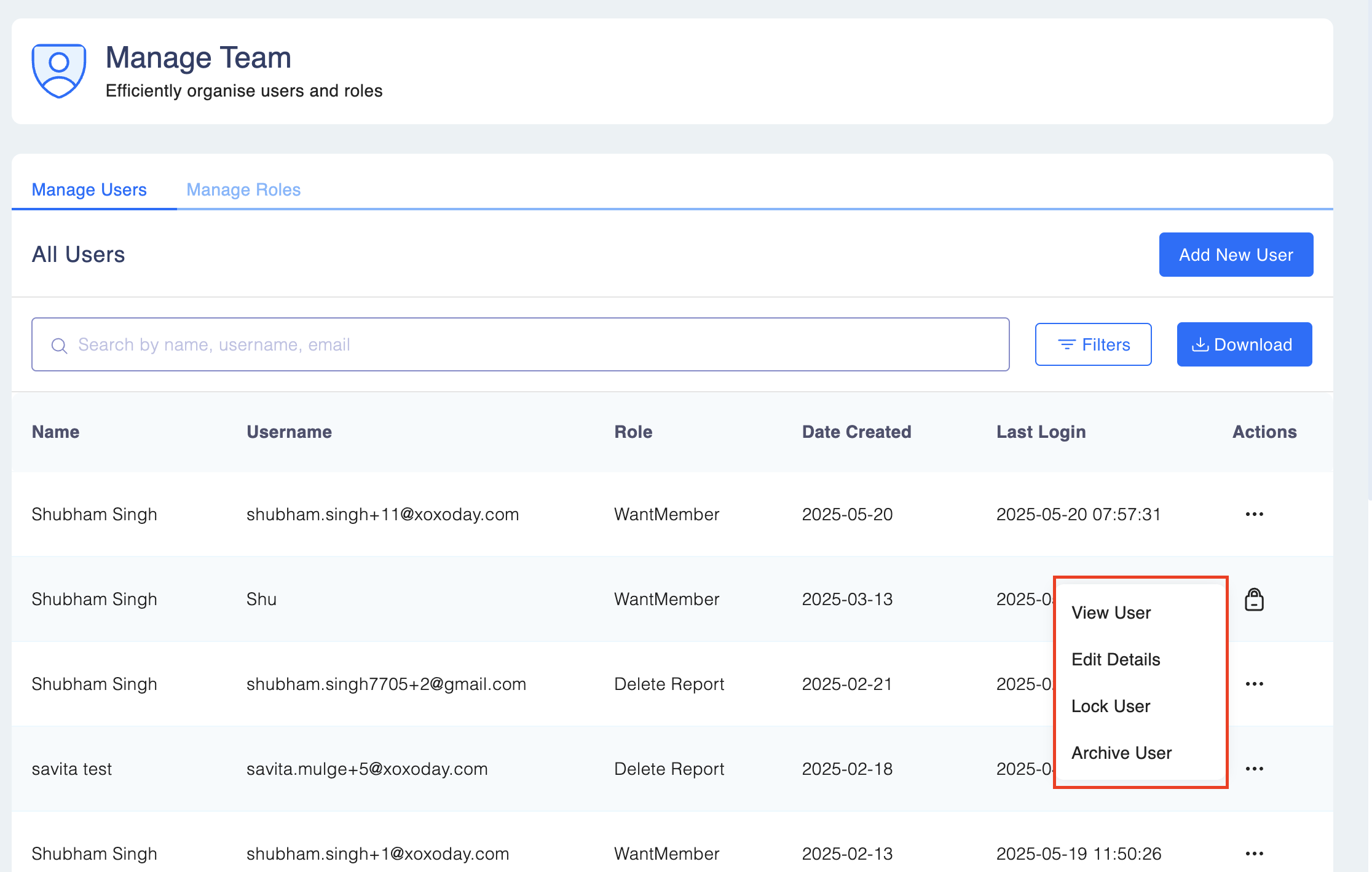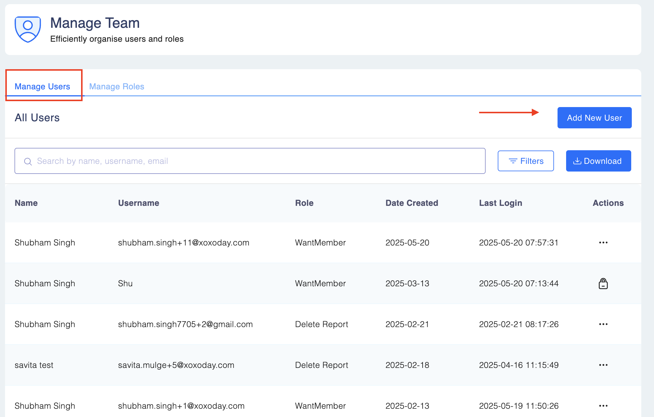 Step 1: Go to Access Control ➝ Managet Team ➝ Manage Users ➝ Add a User.
