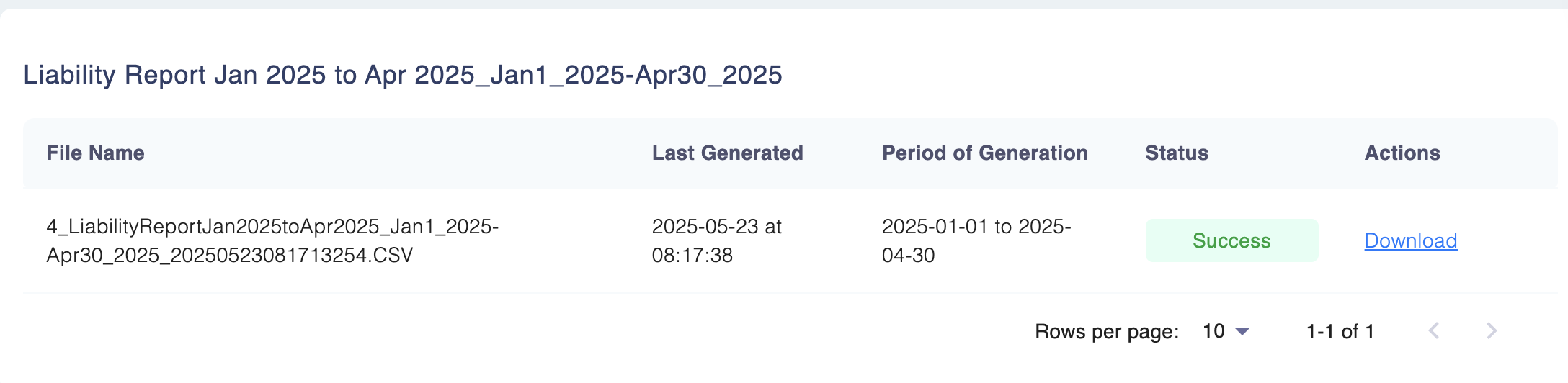 - Alternatively, you can download the generated report by viewing the report and then clicking on the Download button under the actions column.