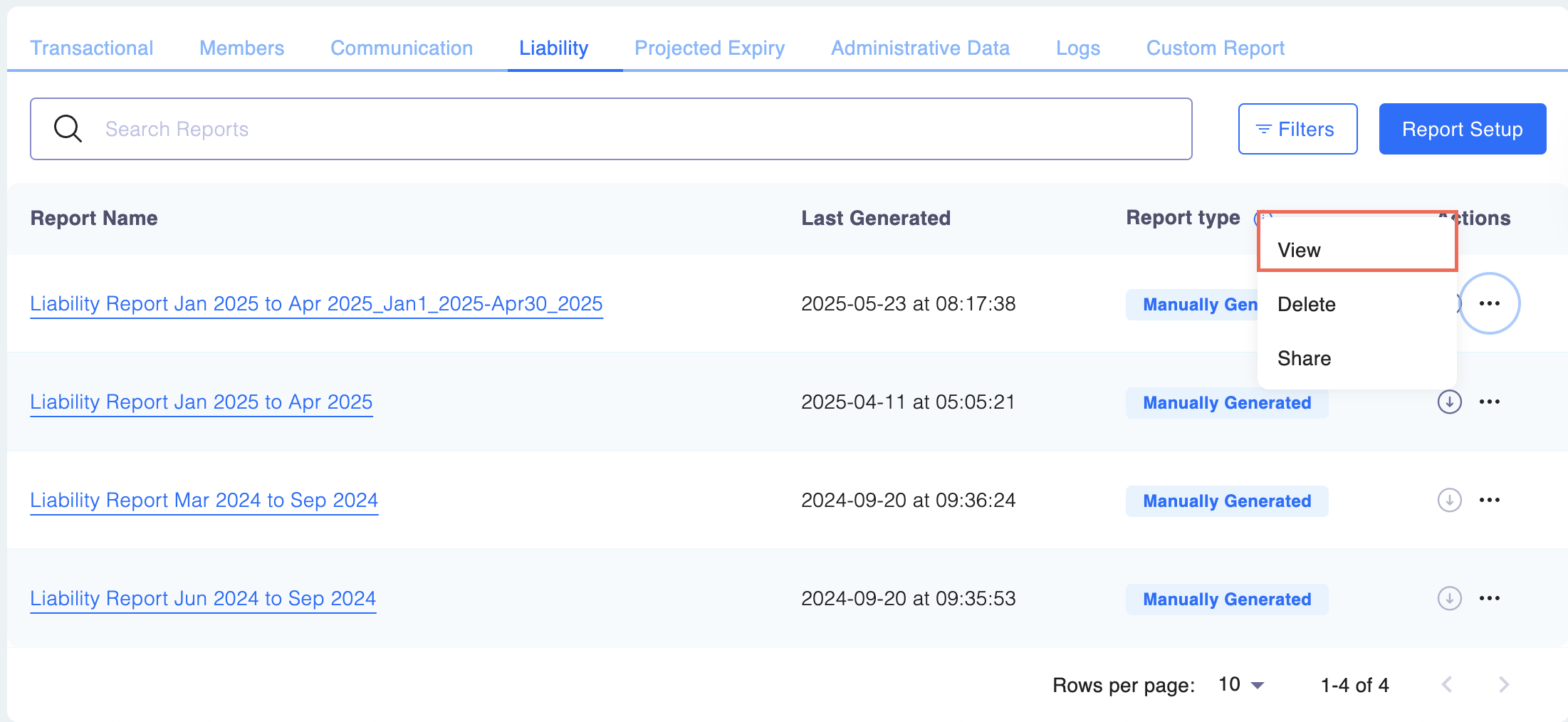 You can share a Liability Report by following the steps below: