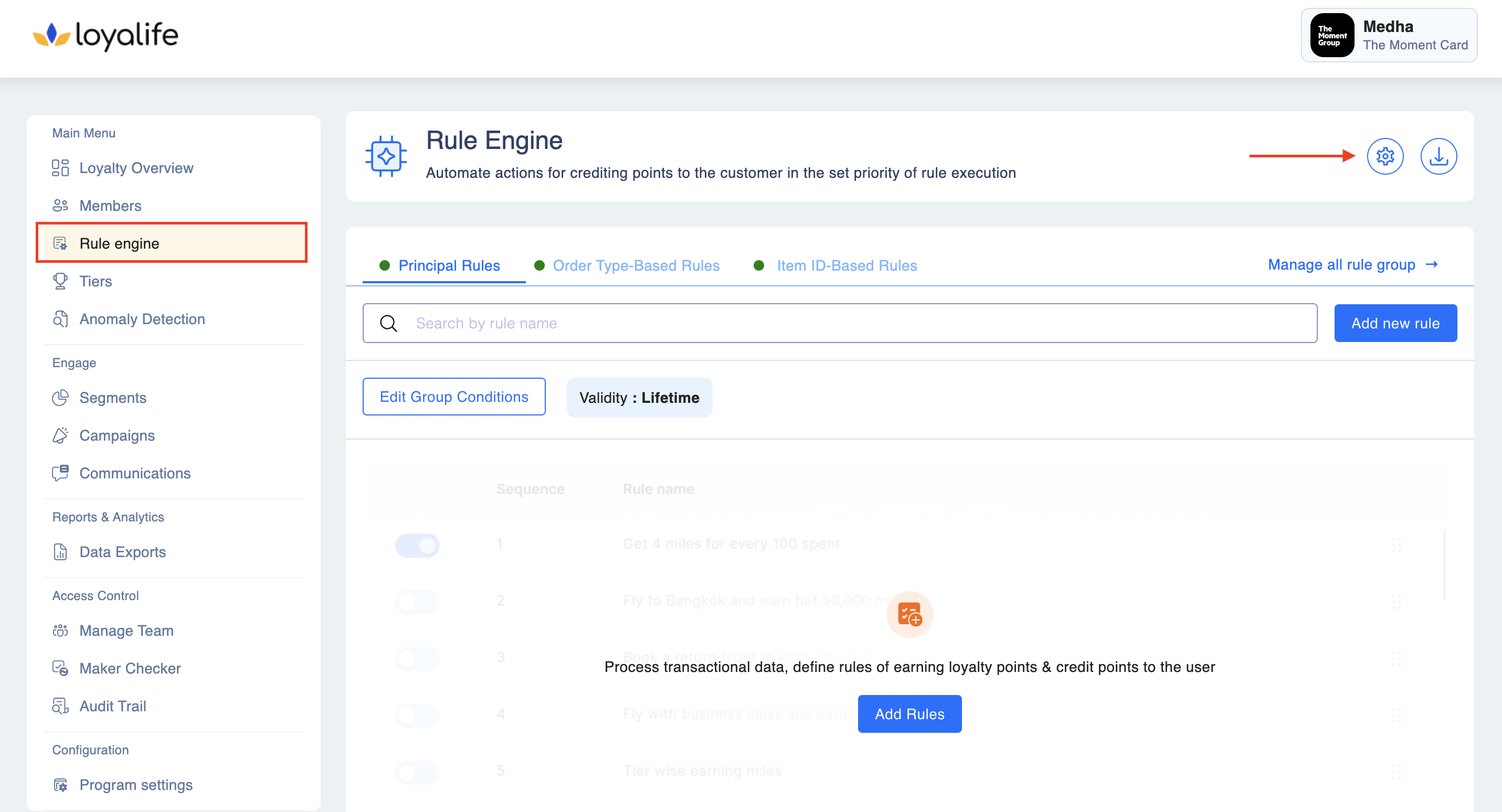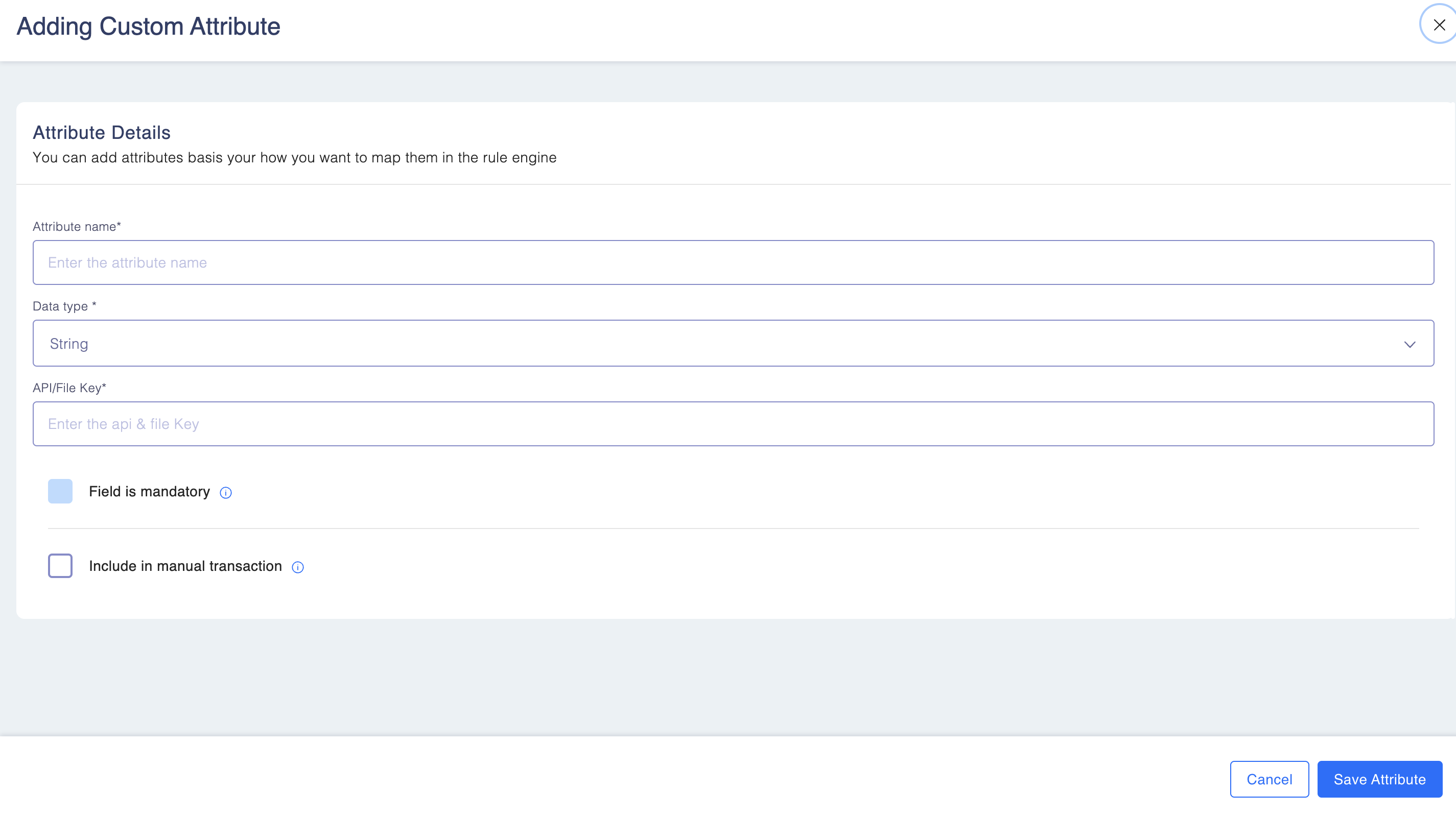 Step 1: Navigate to Rule Engine > Manage Attributes (using the settings icon at the top).