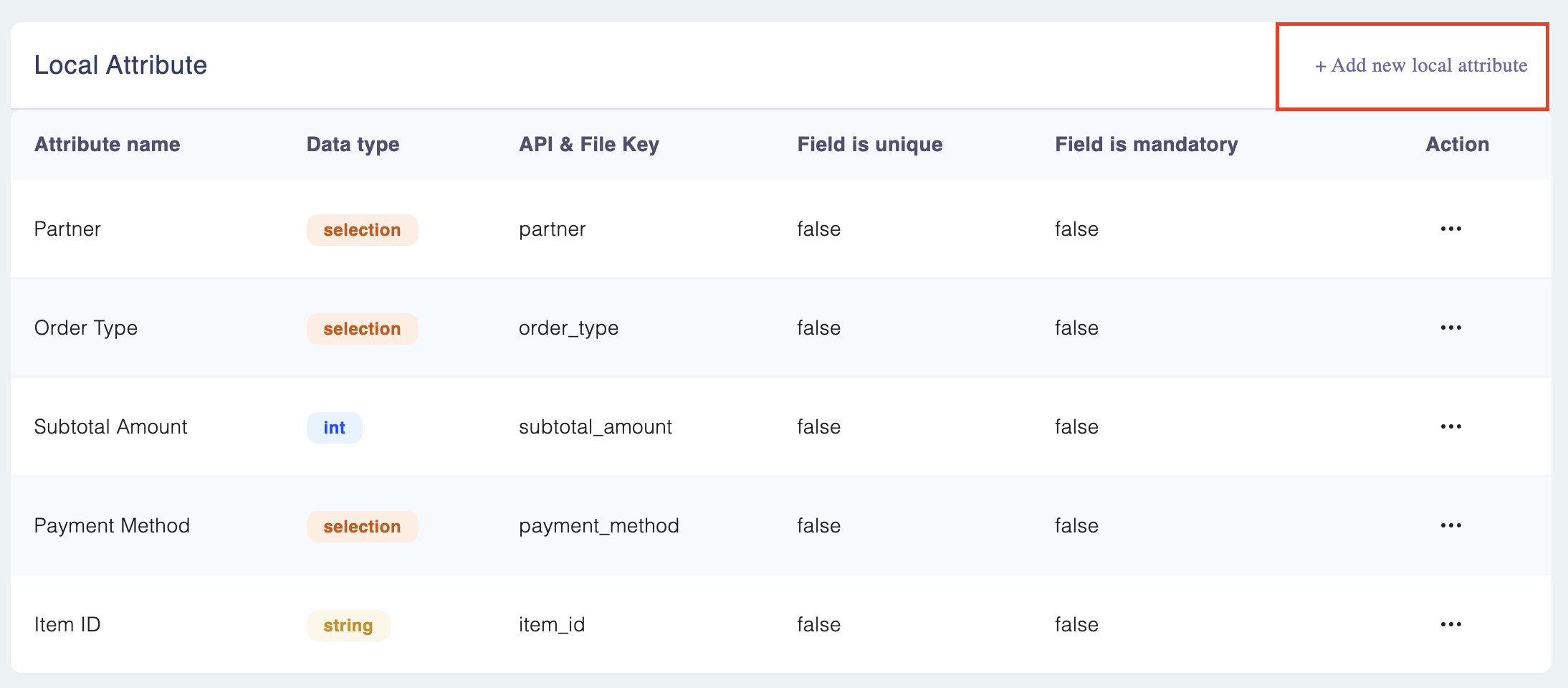- API/file_key name: This is the unique key identifier used in APIs or files to reference the attribute.