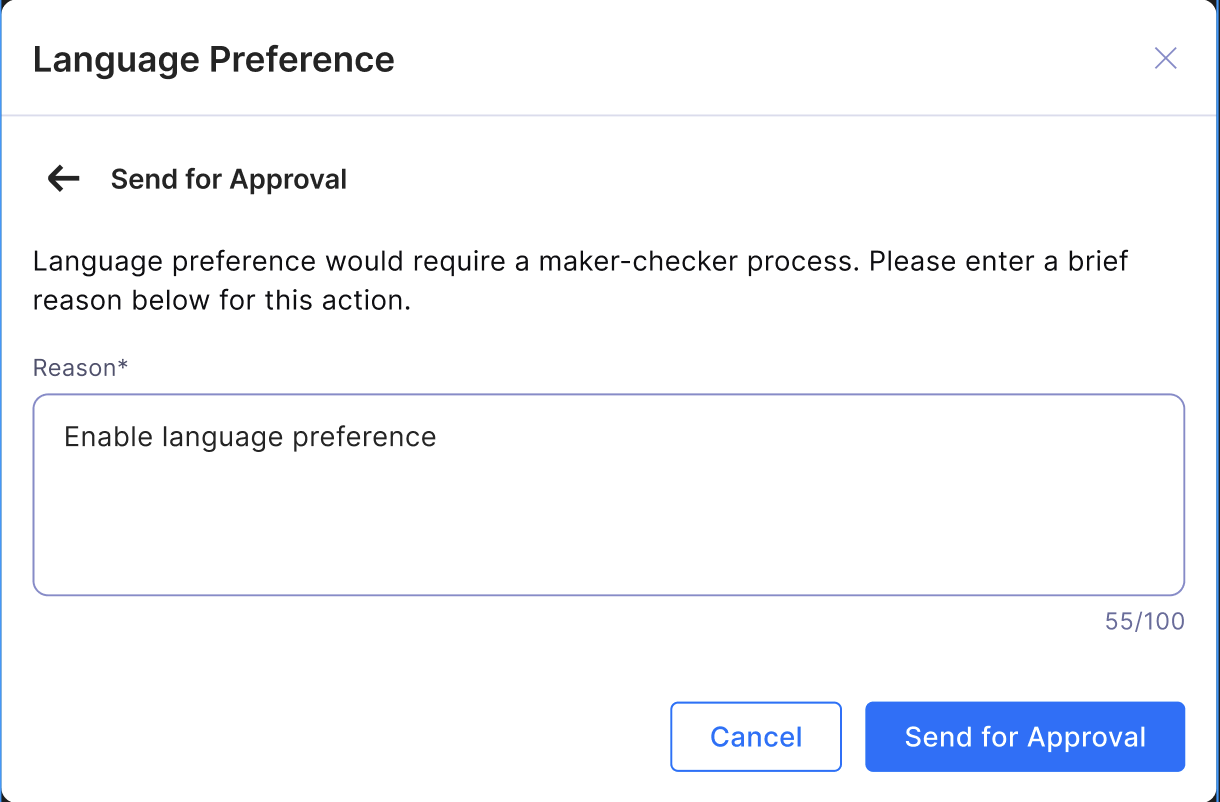 - Reject: The change is blocked. Checker must provide a rejection reason.