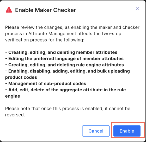 - Confirm activation (⚠️ cannot be reversed once enabled)