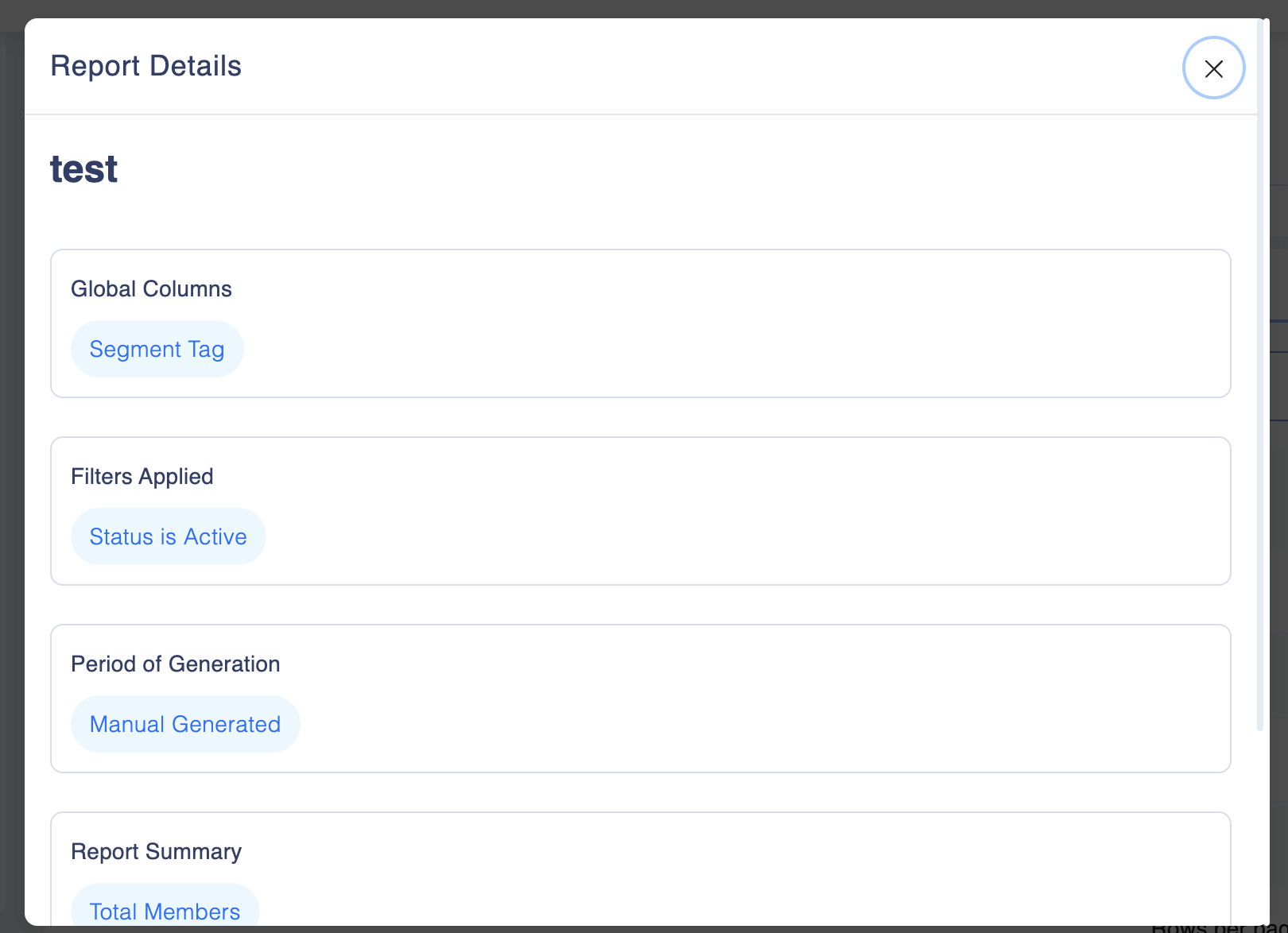 - Once the report is generated, you can view the member data directly within the platform, including the columns you have selected during setup.