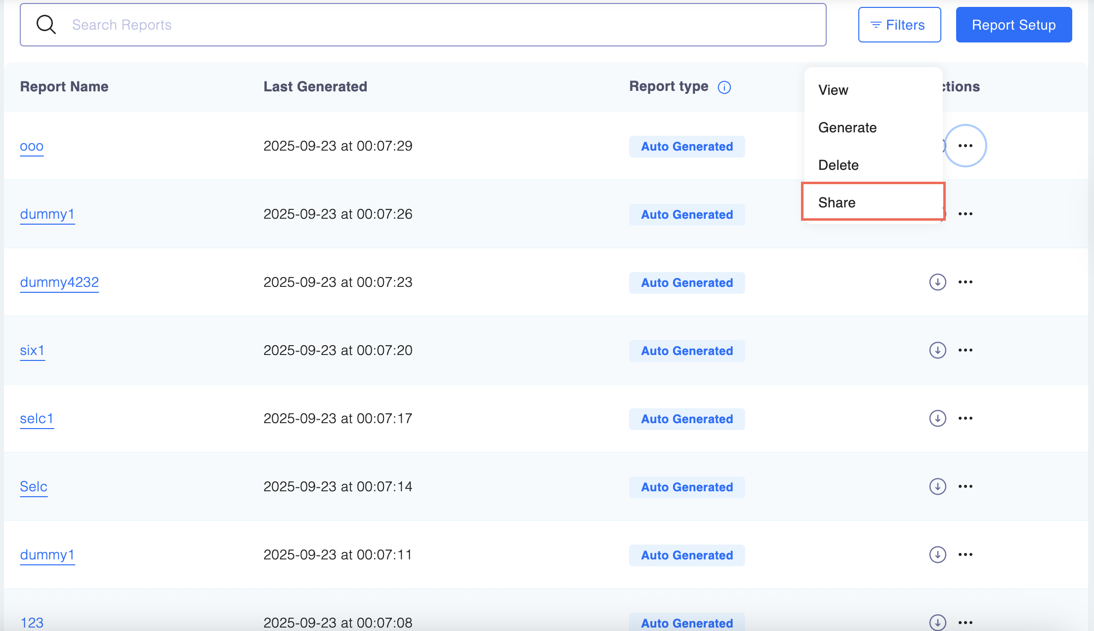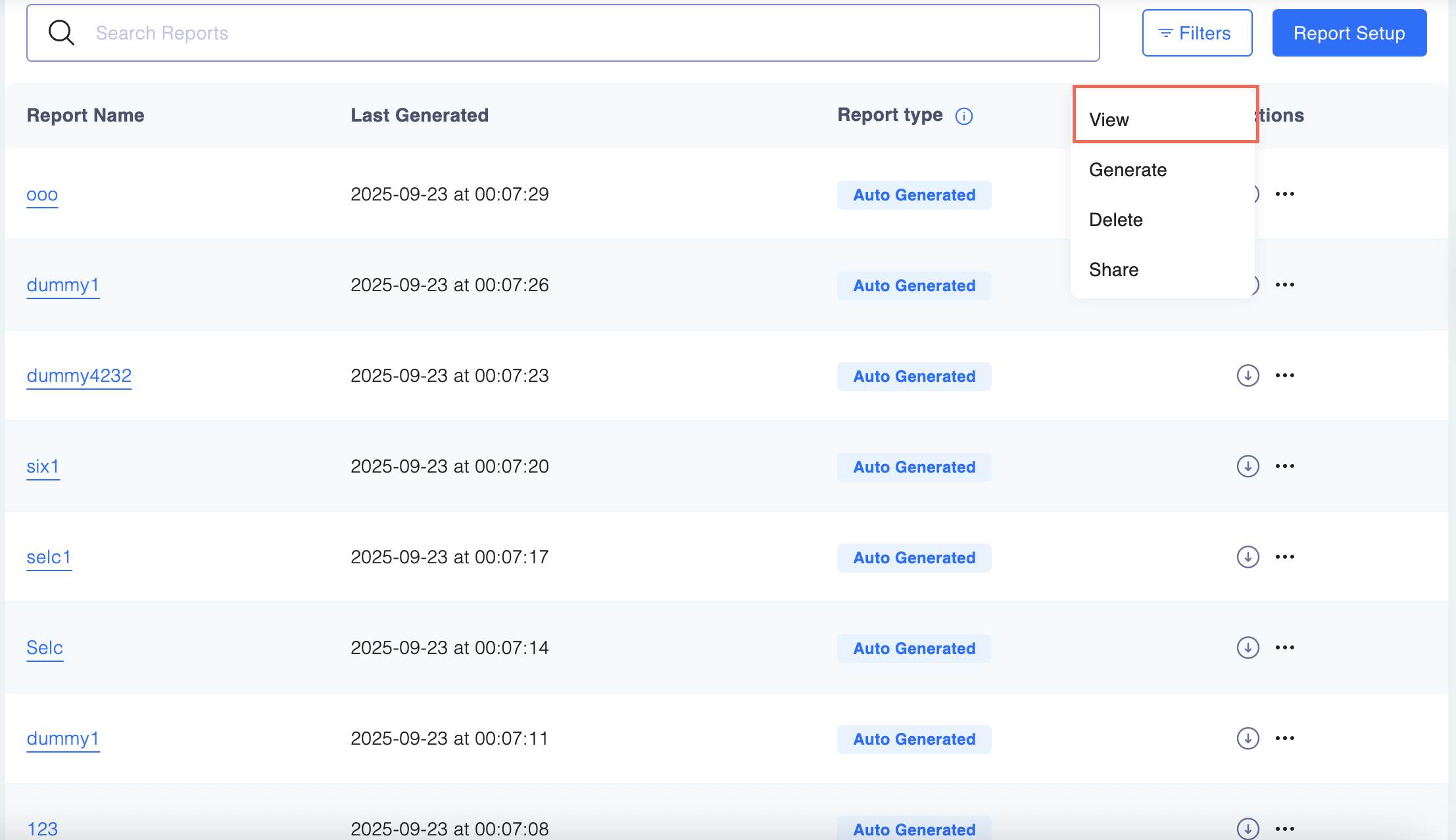 - After the report is generated, you can view it on the platform or download it in a CSV or other available formats.