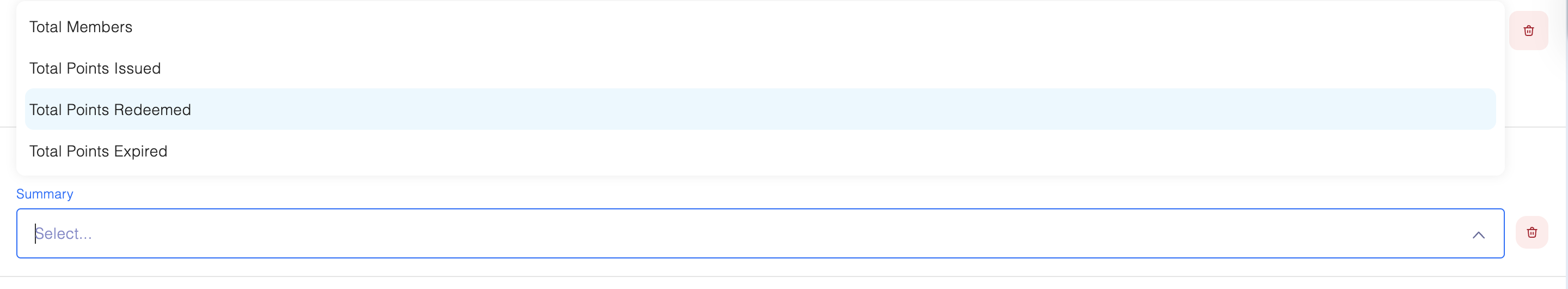 2.5 Report Summary: Choose summary metrics like total points issued or total members (see list below).