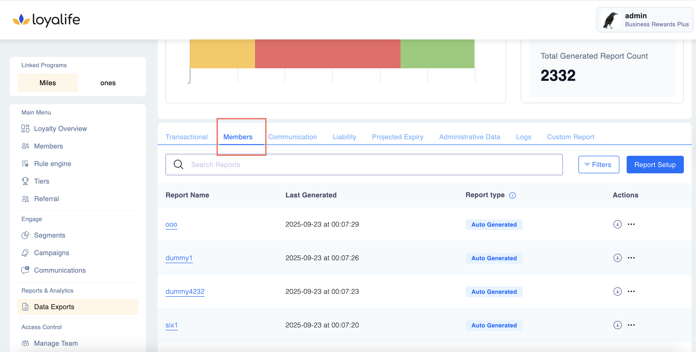 - Go to Reports > Member tab, select the auto-generated report view and click generate