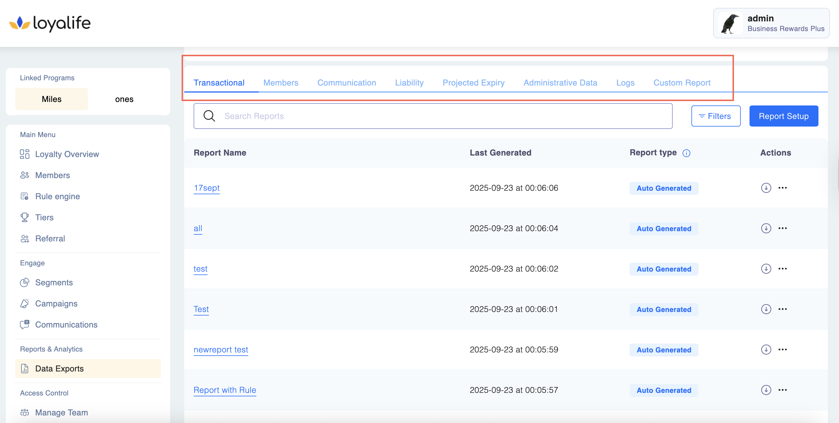 All about reports on Loyalife