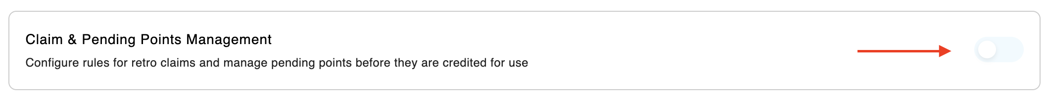 Here, you can configure rules for retro claims and manage pending points before they are credited for use. To add details, just toggle the button.