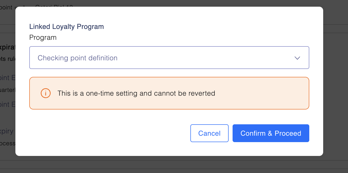 2.4.2 Add the Linked Loyalty program using the drop-down menu; click Confirm & Proceed once done.
