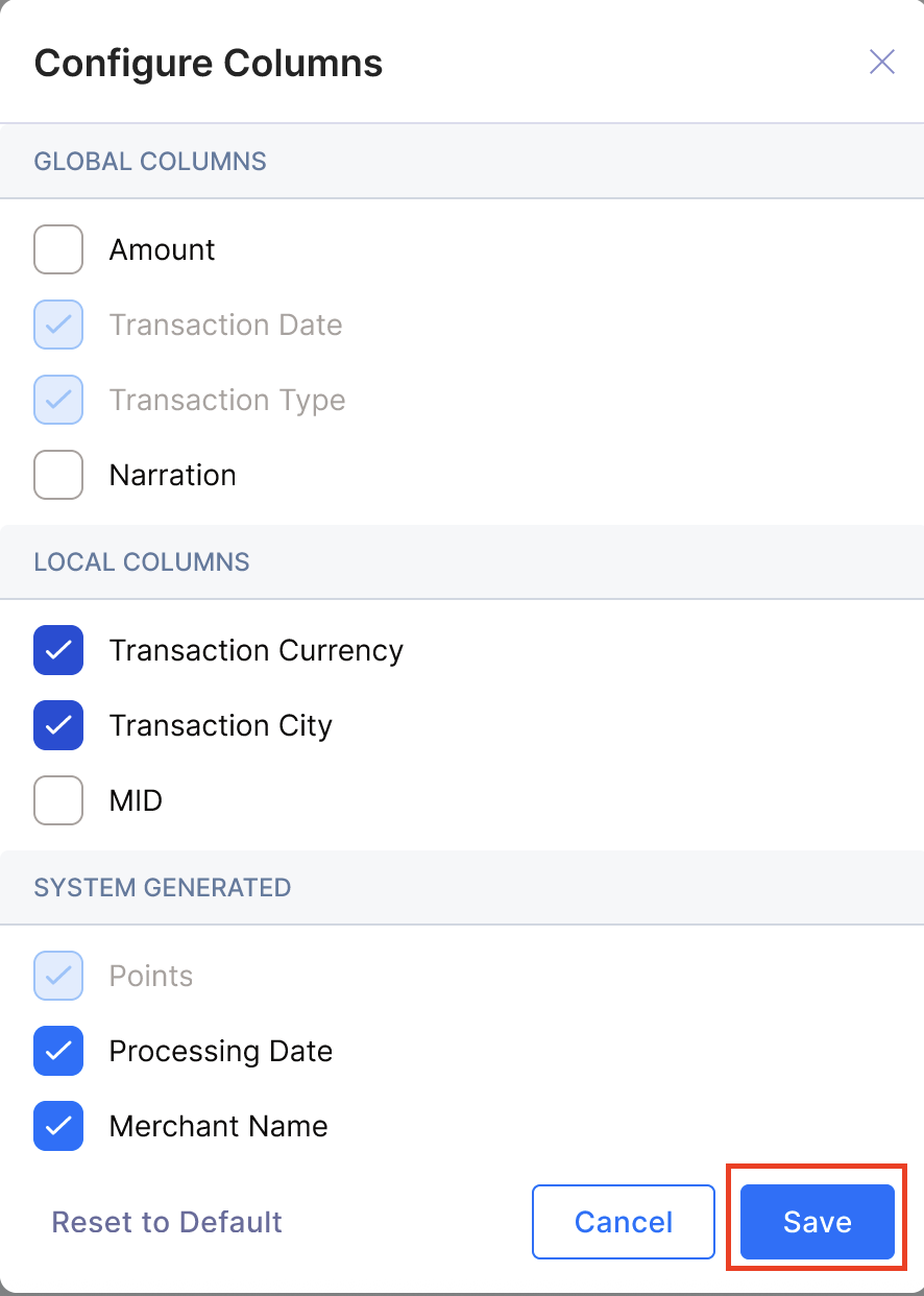 Steps to Configure Columns in Transaction Summary