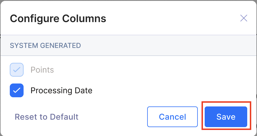 - Note: Default columns cannot be deselected.