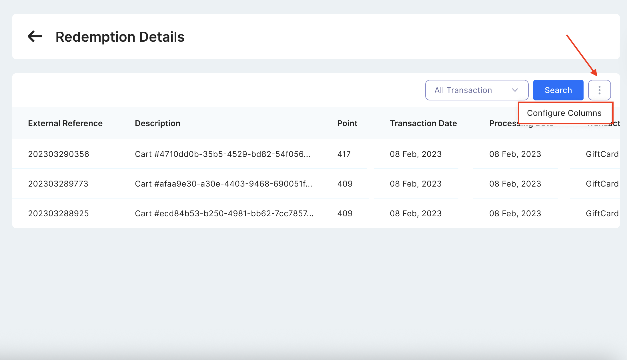 4.1 Column Configuration in Member Transaction Summary Table