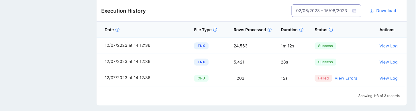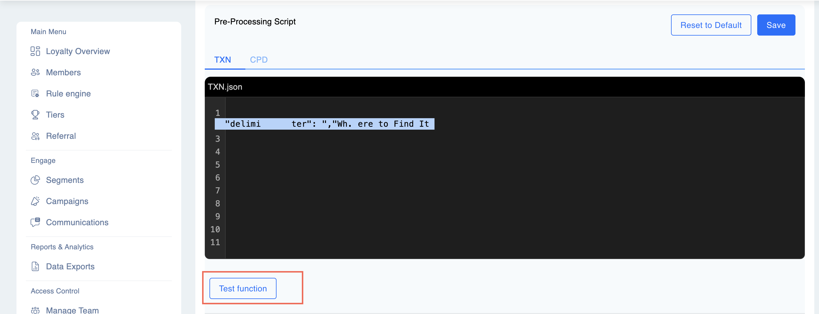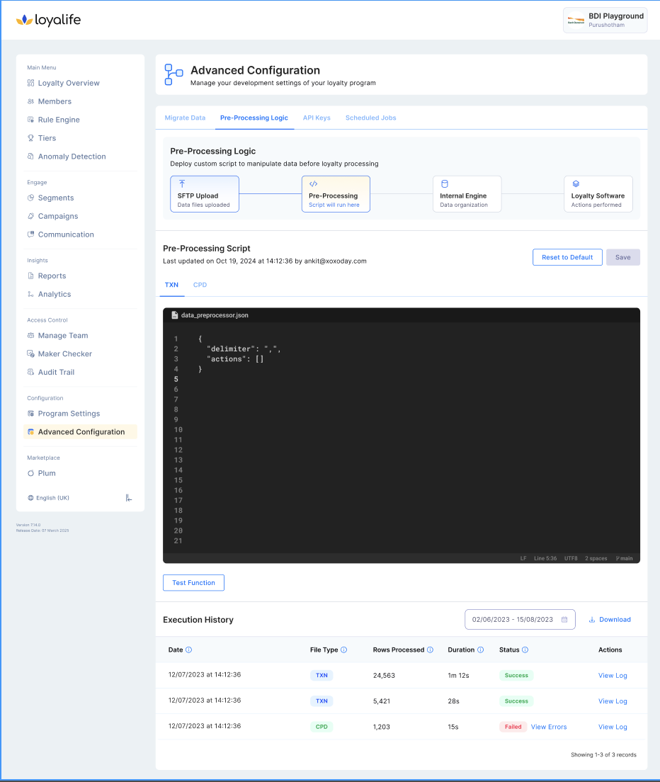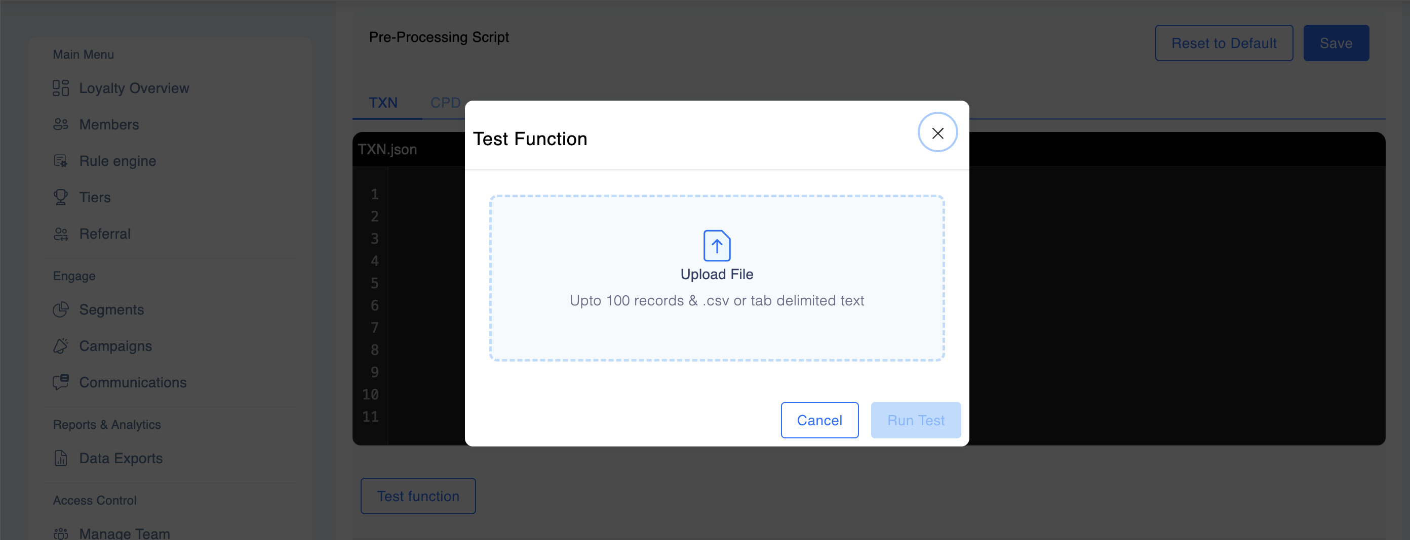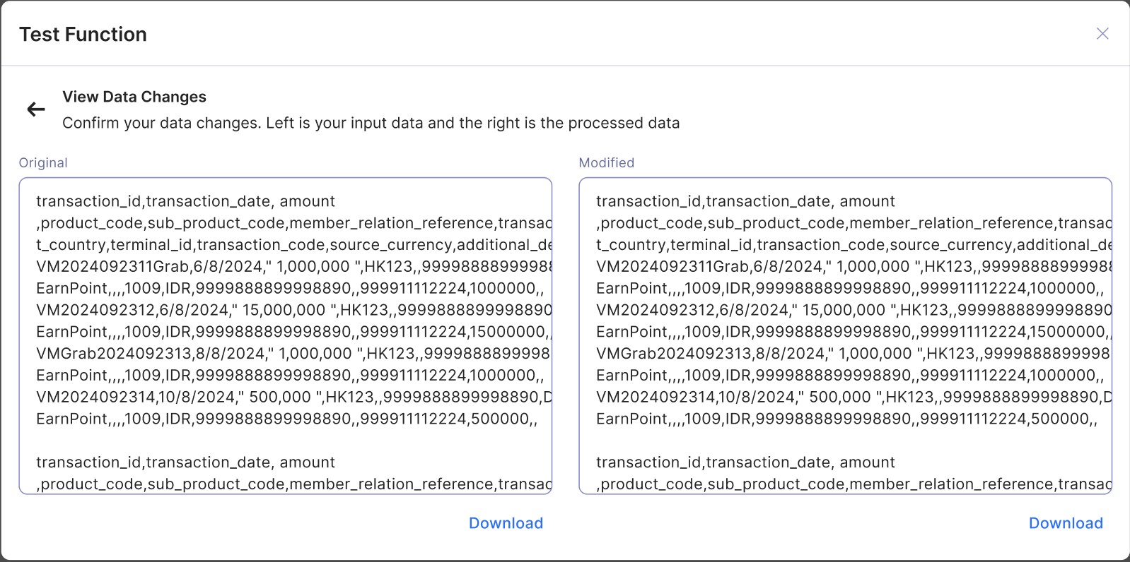 - Upload a small test file (up to 100 rows) by clicking on "Test Function"