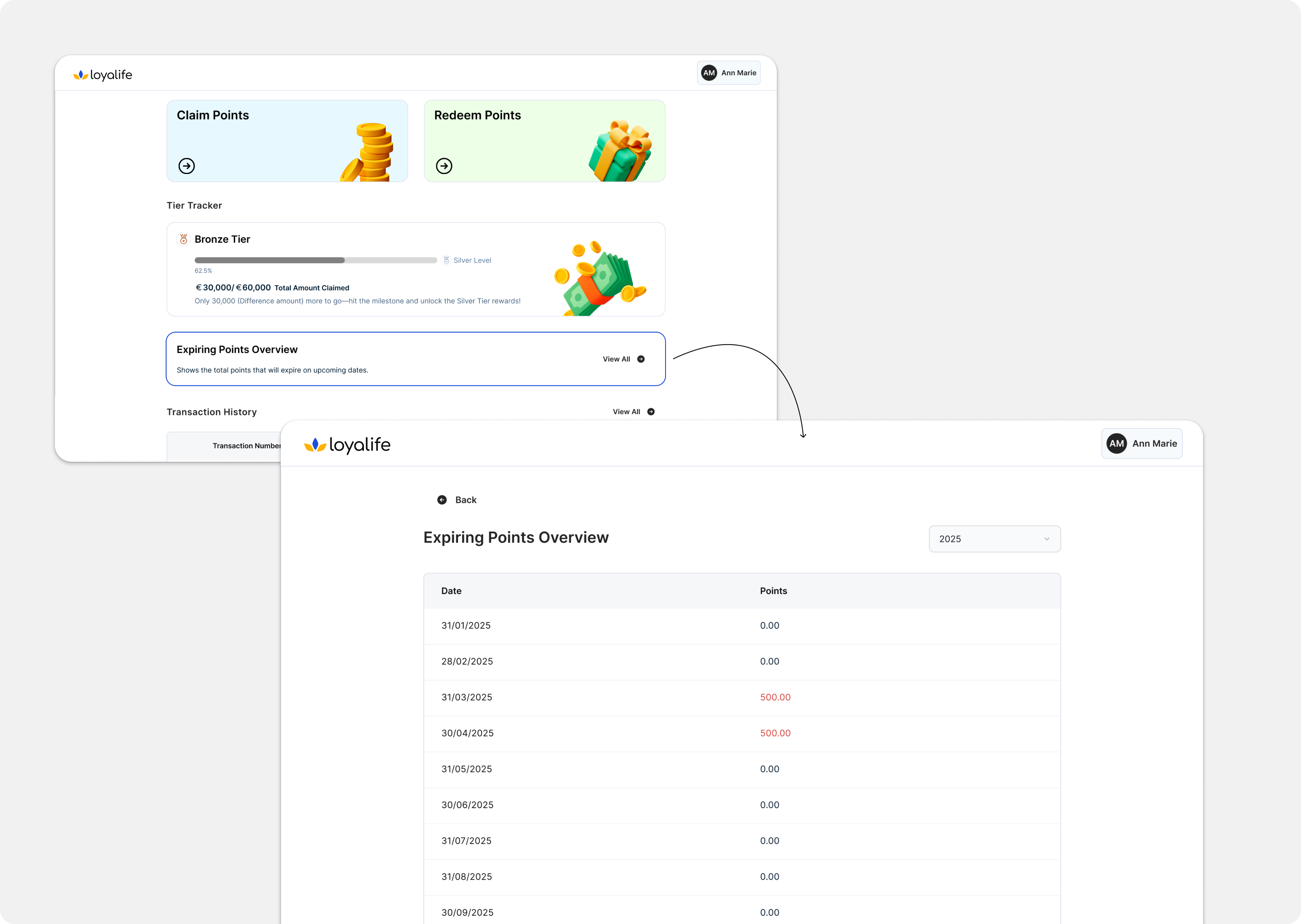 Members often fail to use their points because they don't realize they are about to expire. We added a transparency feature to the Member Dashboard that shows expiration details for the current year plus the next three years, helping members plan their redemptions better.