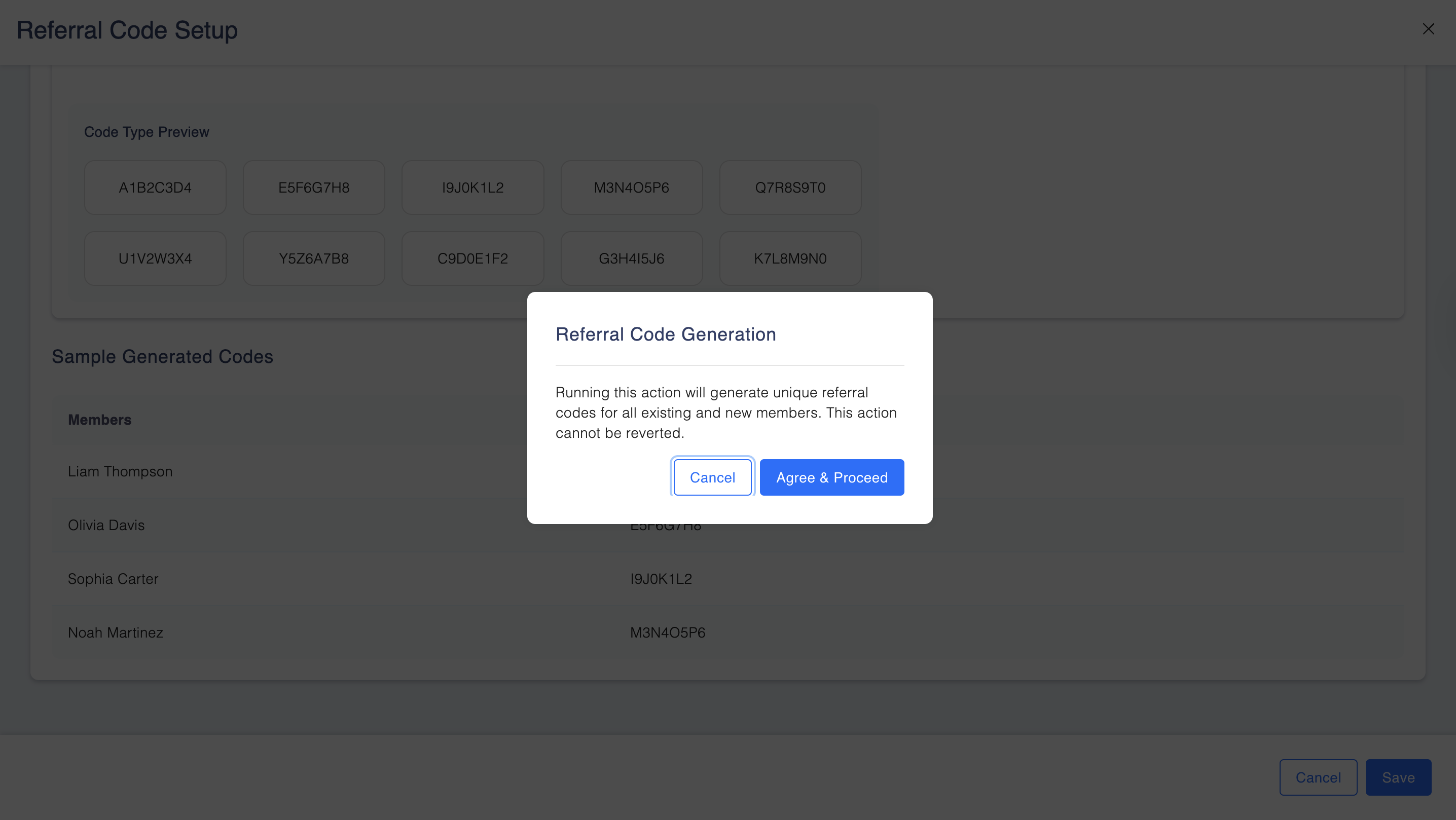 - Admins can define a maximum referral limit per member (default: unlimited).
