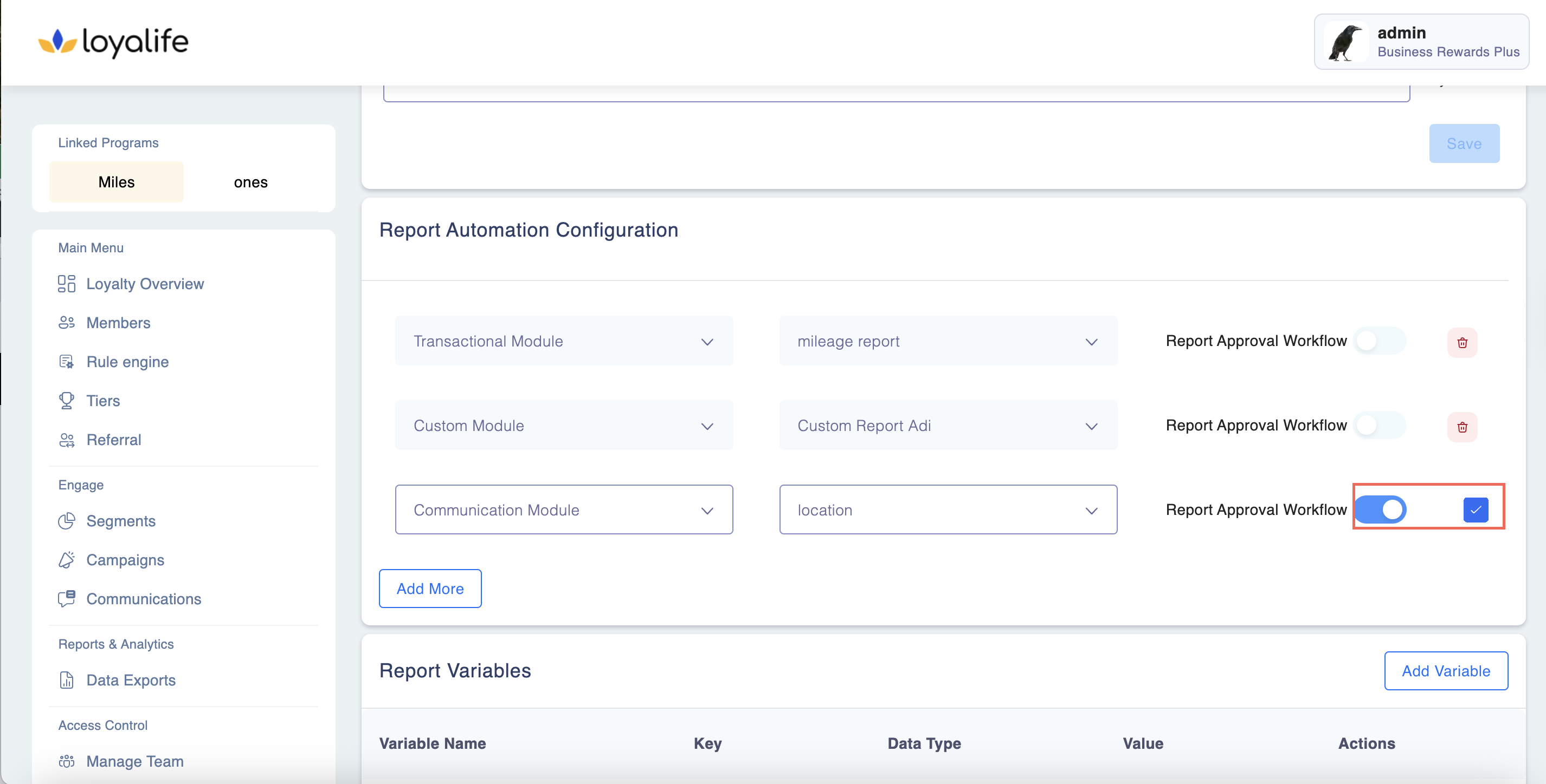 The Report Upload Automation feature allows Loyalife users to configure reports for automated upload to defined destinations (SFTP, API, or internal) and optionally enforce a Maker-Checker approval workflow. This ensures compliance, traceability, and operational efficiency.