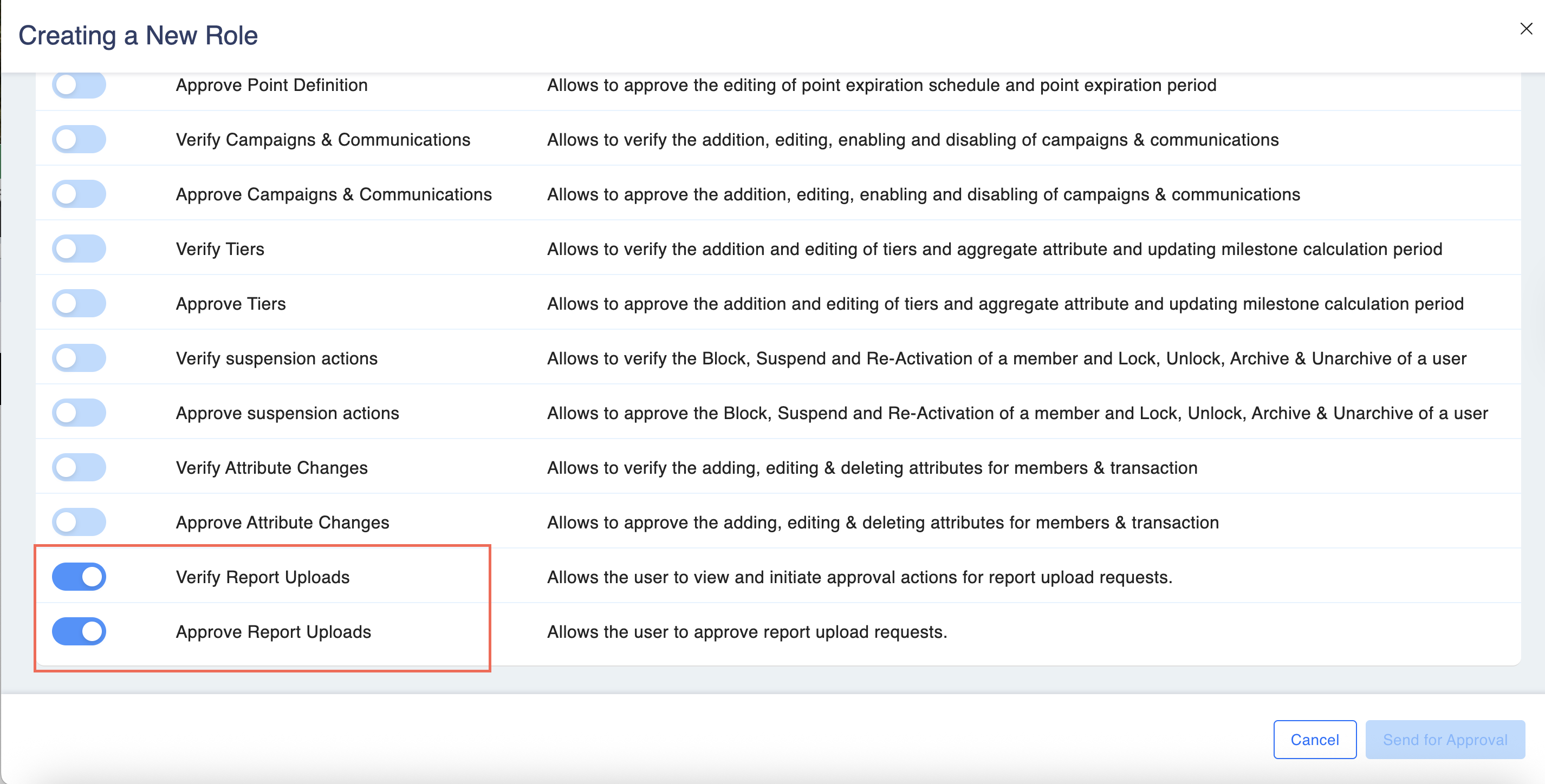 - If the report requires verification and approval before upload, toggle Enable Approval Workflow ON.