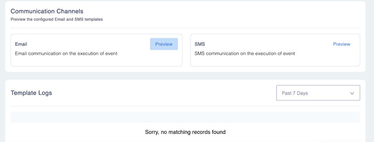 - Email & SMS Template Preview: A preview of how the email and SMS templates will