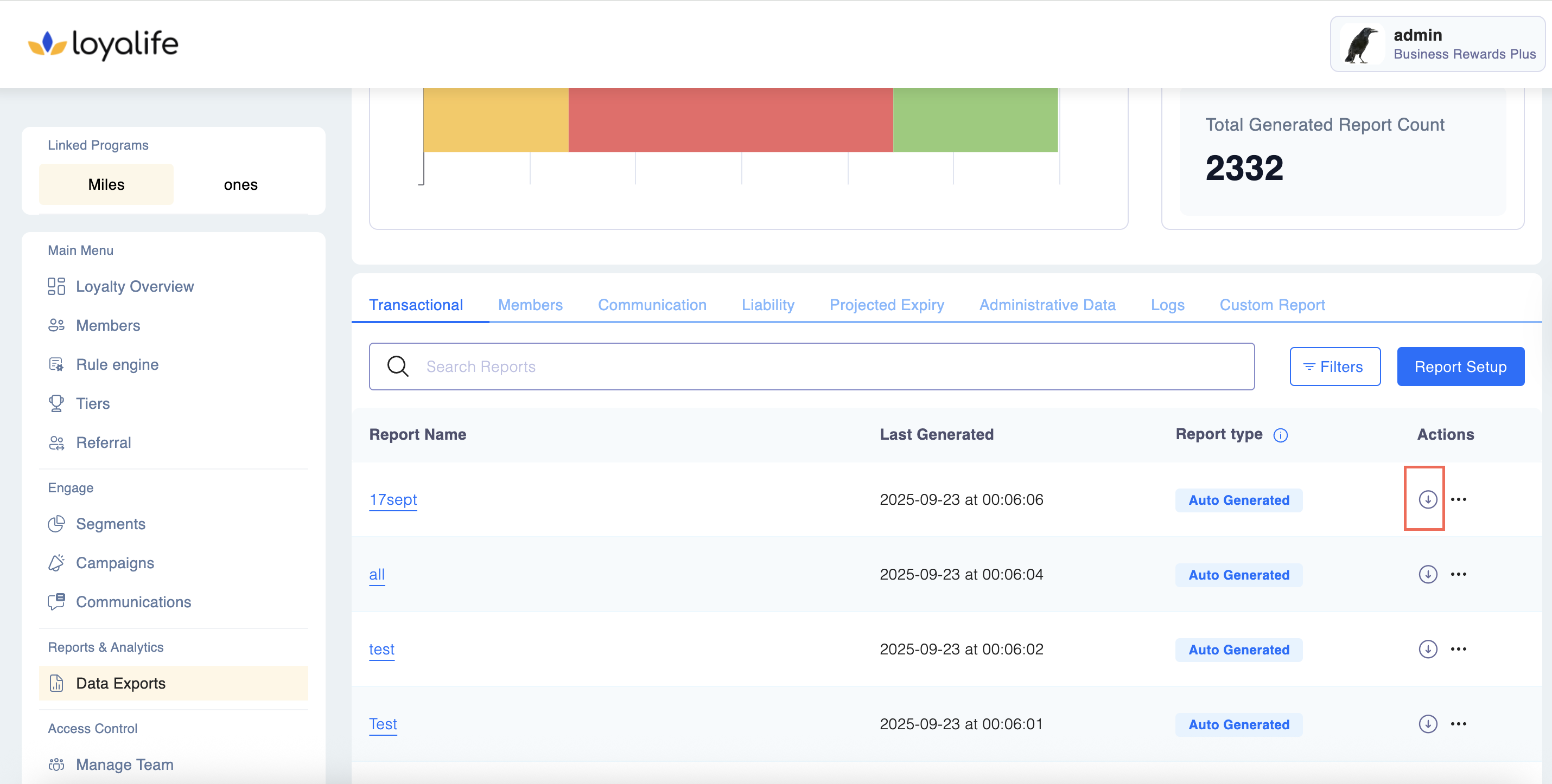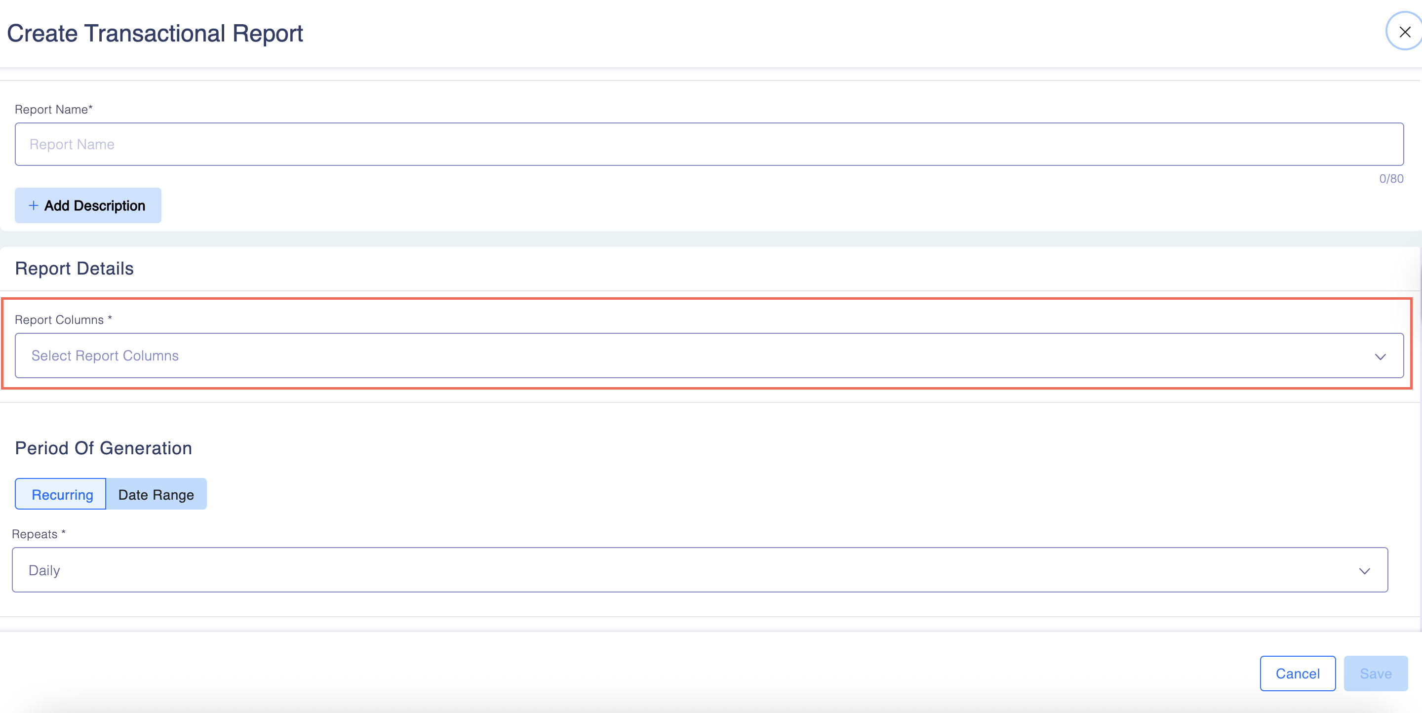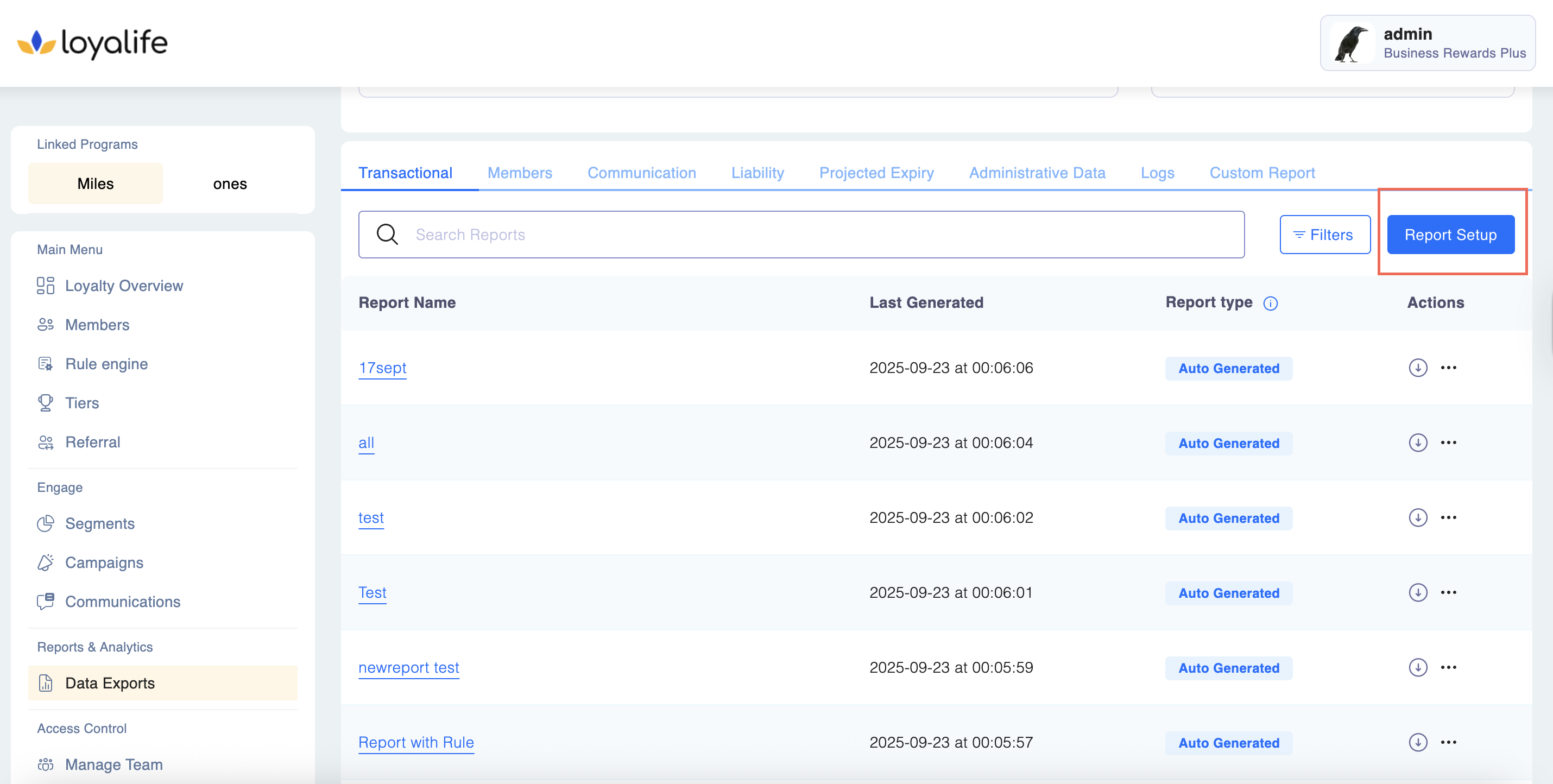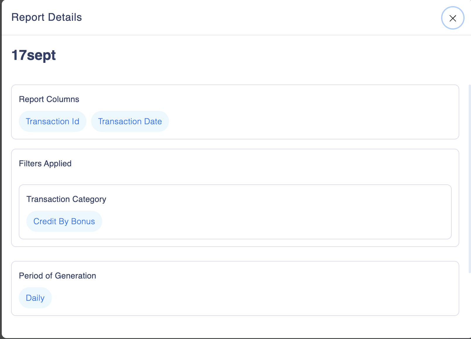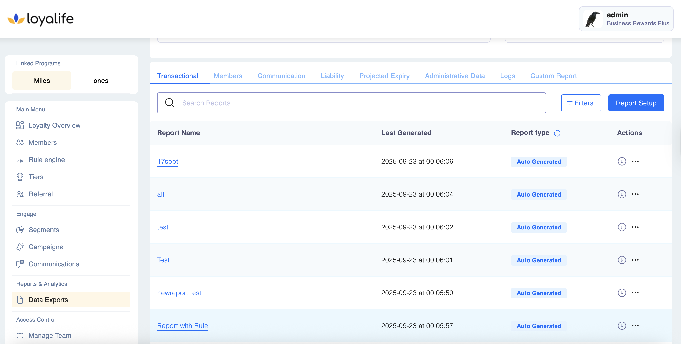 - Once the report is generated, you can view the transaction data directly within the platform, including the columns you have selected during setup.