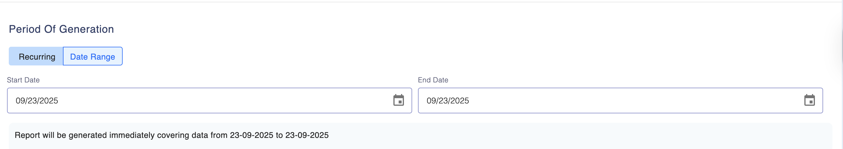 - Date Range: Define the custom date range by adding a Start and an End date.