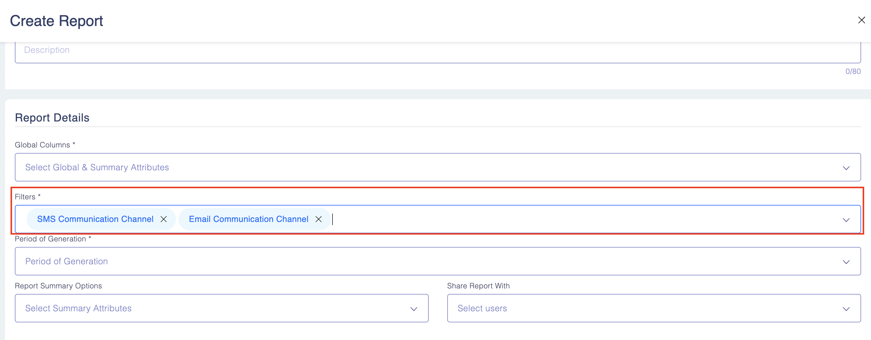 - SMS Communication Channel: Filters data based on the SMS communication channel.