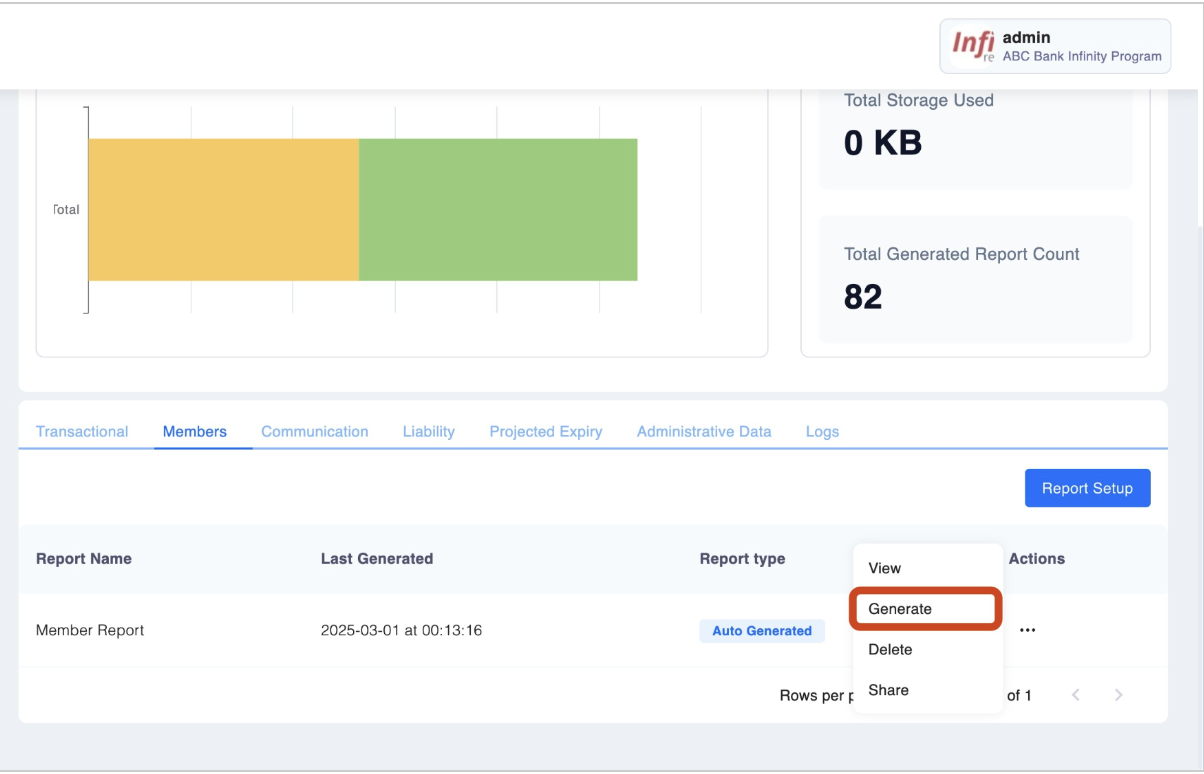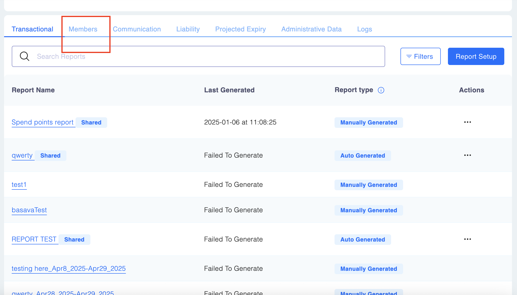 - Once saved, the report will be generated based on your selected criteria. You can access it under the Member Reports section. Click on the three dots and select "Generate".